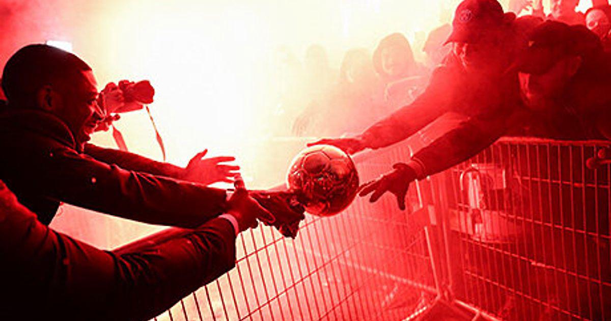 Лучшего футболиста мира окружала плотная стена из охранников, но сам Усман двинулся к болельщикам. И через забор протянул «Золотой мяч» парижанам – касание случилось! Есть лучшее фото после церемонии.