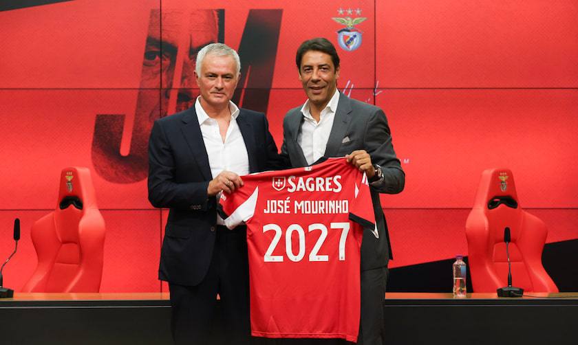 После скандального ухода из «Фенербахче» Жозе недолго оставался без работы. И неожиданно возглавил клуб, который приложил руку к его увольнению. Последней каплей терпения боссов «Фенера» стал вылет клуба из стыков ЛЧ от «Бенфики». Так вот, сама «Бенфика» из-за поражения в еврокубках на неделе уволила наставника Бруну Лаже и неожиданно позвала главным Моура. Жозе долго не думал и согласился вернуться в клуб, в котором 25 лет назад начинал карьеру главного тренера. Свою работу в Бенфике особенный начал с пафосных и немного провокационных слов: «Ни один из гигантских клубов, что я тренировал, не вызывал у меня такого ощущения чести, ответственности и мотивации, как «Бенфика». Я буду жить ей».