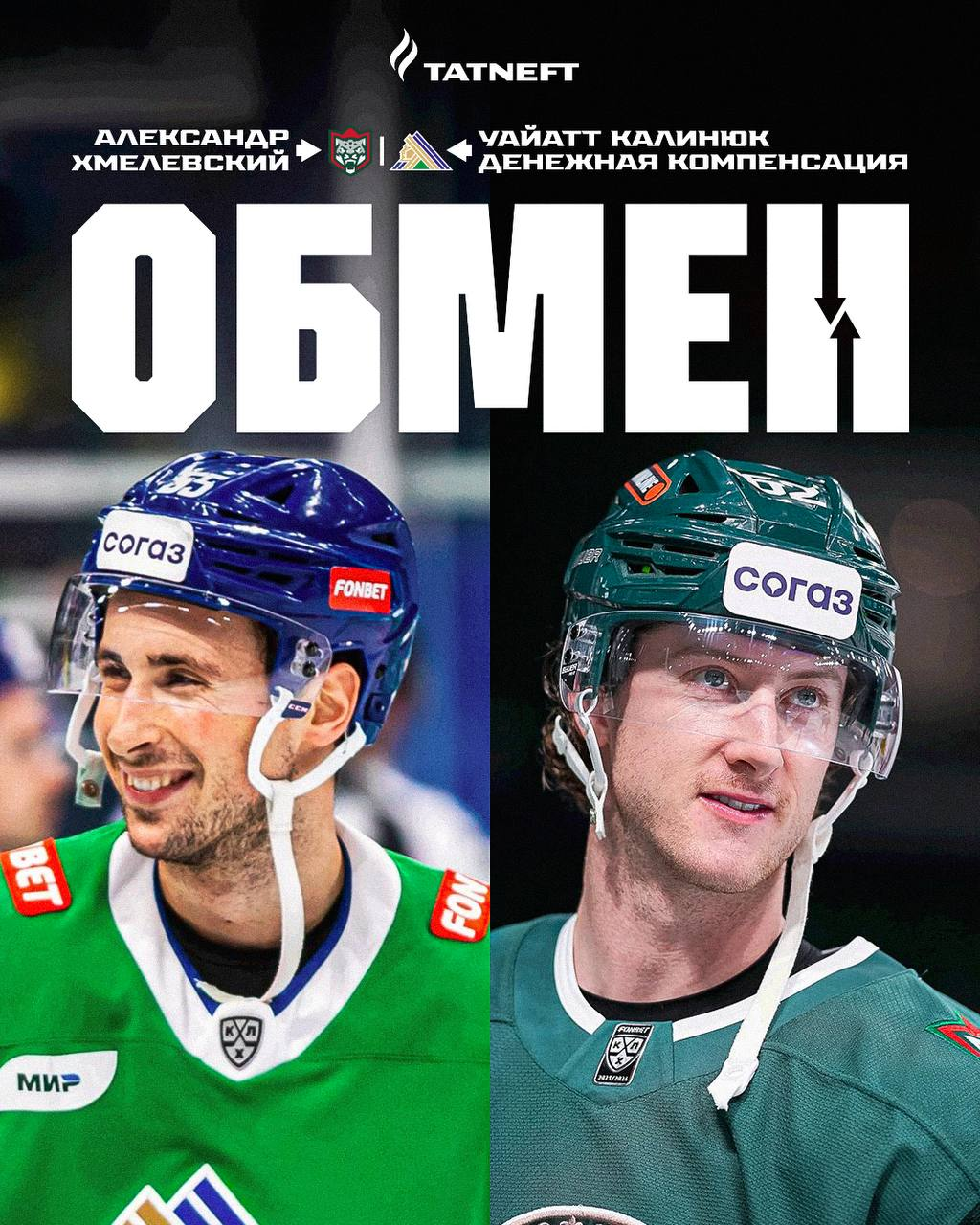 Но ближе к вечеру Алексей Шевченко в своем телеграм-канале написал, что Уайатт Калинюк перейдет в уфимский клуб, а бывший 55 номер уфимцев отправится в «Ак Барс». И уже менее чем через два часа подоспела официальная новость сначала и от уфимского клуба, а затем и от казанского клуба. По информации «Бизнес Онлайн», помимо канадского защитника «Ак Барс» переведет на счет «Салавата Юлаева» 230 миллионов рублей.