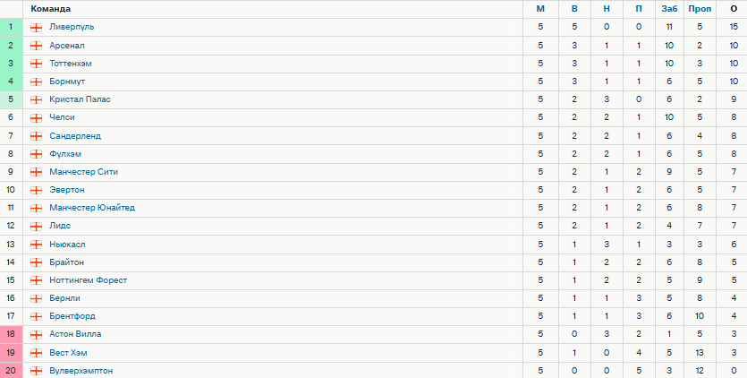 Стоит напомнить, что таблица выглядит следующим образом: «Ливерпуль» – единственный, кто не проиграл ни одного матча. Они имеют преимущество над тремя преследователями аж пять очков.