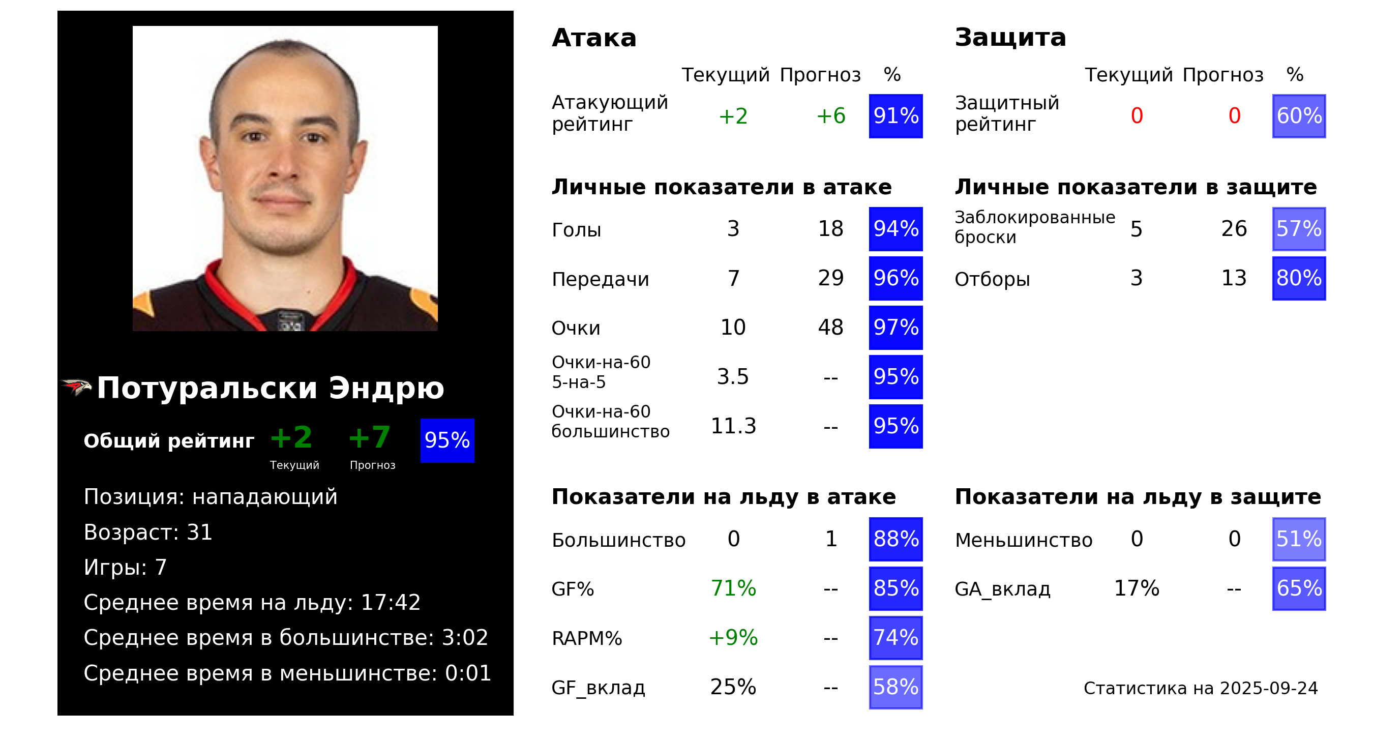 Сразу два игрока лучшей тройки Локомотива и КХЛ вошли в топ-5 лучших игроков этого сезона на 24 сентября 2025. Александр Радулов создал себе небольшой задел по рейтингу перед остальными. С Радуловым на льду Локомотив со старта сезона выигрывает свои минуты в равных составах со счетом 10:3, с Георгием Ивановым 10:4. Радулов и Иванов занимают 2-е и 4-е места по набранным очкам на 60 минут игрового времени 5-на-5, уступая только Алексу Лиможу (5-ое место рейтинга). Лимож пока MVP сезона в Минске: он лидер команды по очкам, и вместе с Сэмом Энэсом на их долю приходится 62,5% голов Динамо в этом сезоне. Константин Окулов занимает 8-е место рейтинга, являясь лидером КХЛ по игровому времени 5-на-5 среди нападающих. Среди игроков, играющих больше 14 минут за матч в формате 5-на-5, только трое имеют показатель GF% выше 70% - Михаил Воробьев, Алексей Кручинин и Эндрю Потуральски. Потуральски отлично вписался в систему Ги Буше, совмещая качественную игру в обороне и в атаке. Он стал лучшим в лиге по очкам в большинстве на 60 минут среди нападающих (12,2) и во всех ситуациях среди всех игроков, сыгравших больше 15 минут в среднем за матч (5,11).