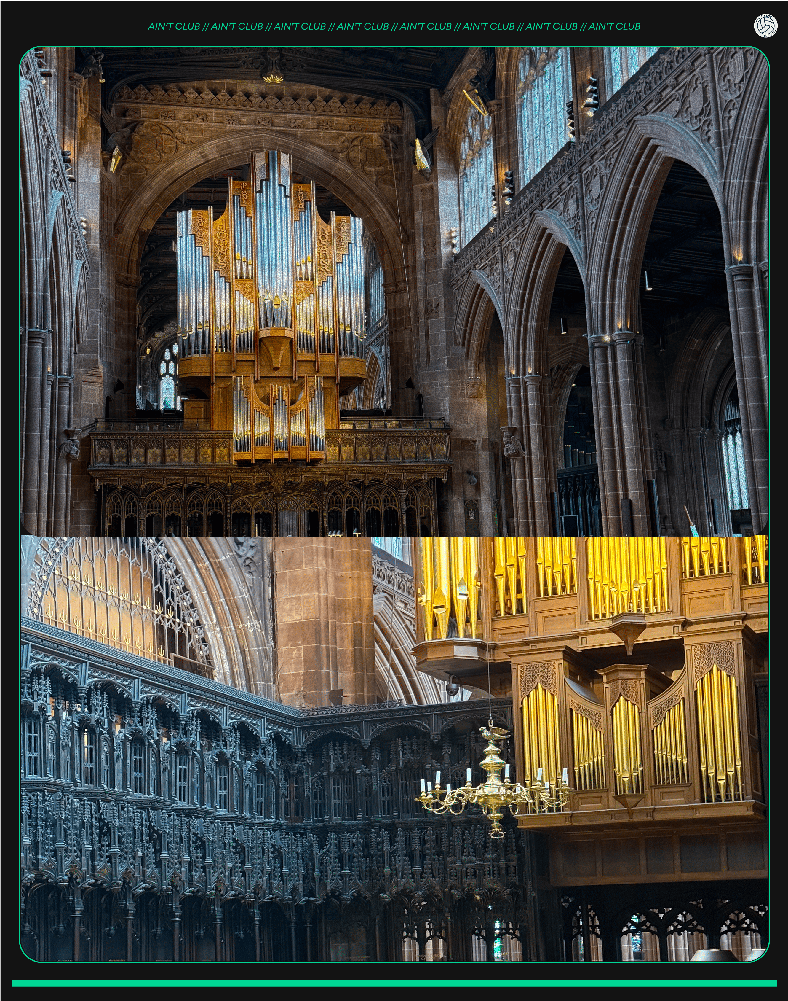 Рядом возвышается Манчестерский собор – храм в готическом стиле, чья история началась в XV веке. Во время Реформации часть убранства была уничтожена, а во Вторую мировую войну собор серьезно пострадал от бомбардировок: крыша обрушилась, витражи были выбиты. Внутри можно увидеть самые широкие хоры в Англии и резные деревянные панели XV–XVI веков, где, помимо библейских сюжетов, встречаются мифические звери и сатирические сценки из жизни горожан.