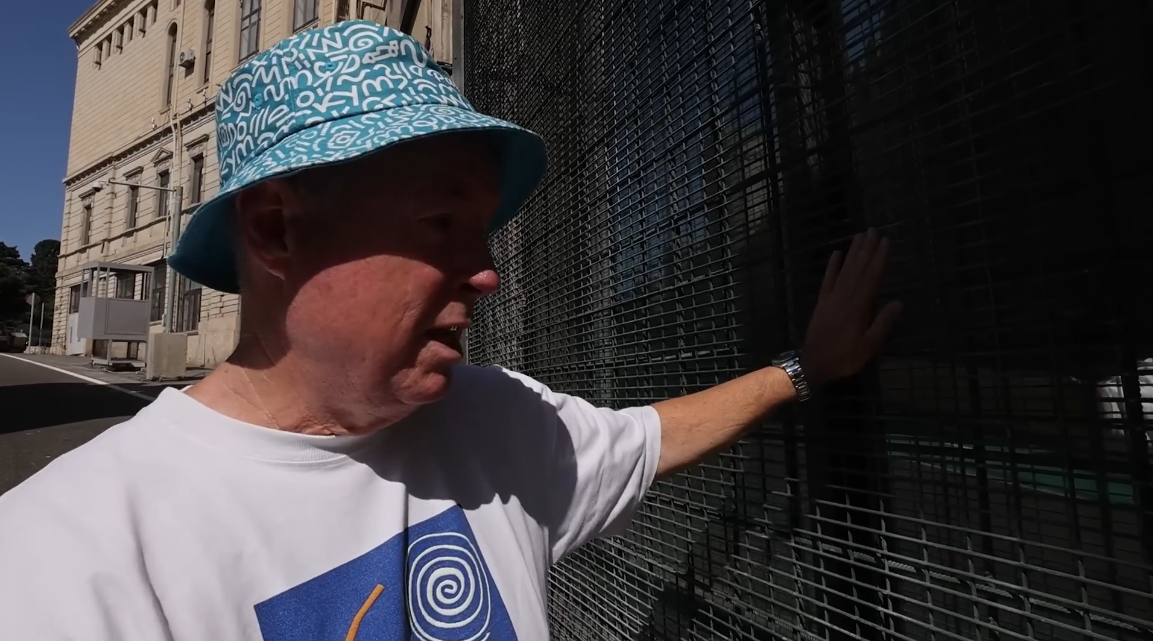 Для защиты окон организаторы поставили сетку из прочного металла. Предусмотрительно!