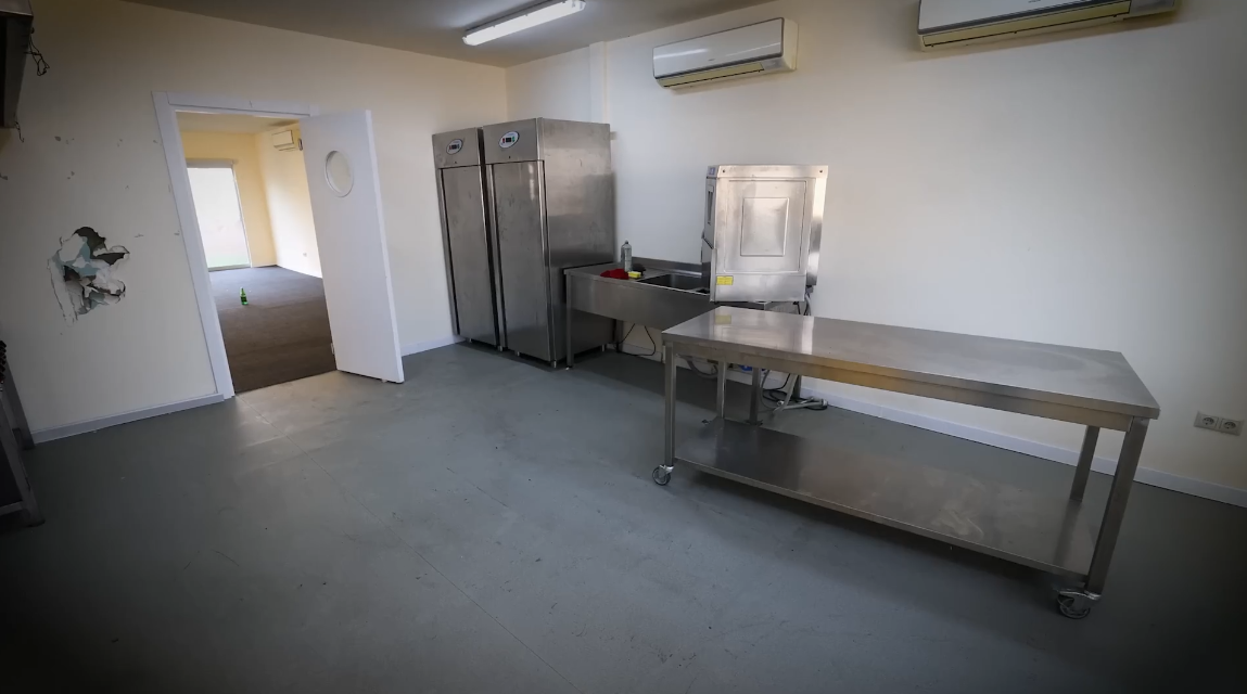 А это уже кухня в зоне гостеприимства. Основное убрали, но плита все еще на месте. Кейтеринговые компании упаковали оборудование и отправили на склады.