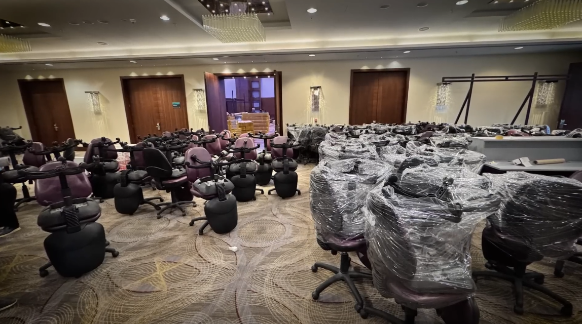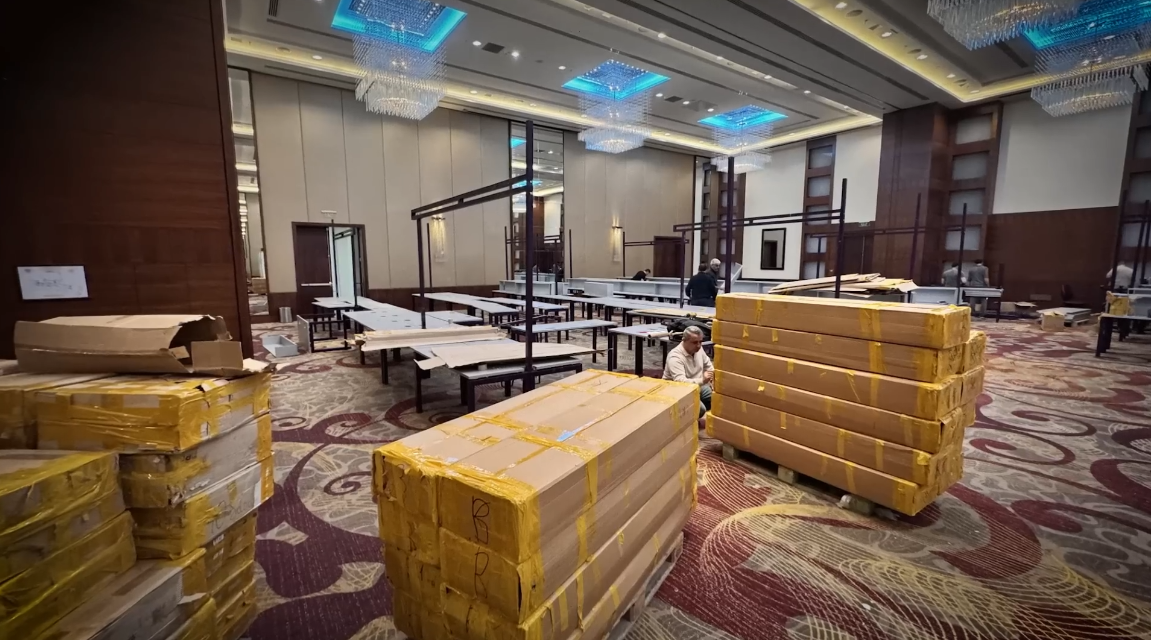 В отеле Hilton организовывали медиа-центр, теперь помещение возвращается к своему естественному состоянию.