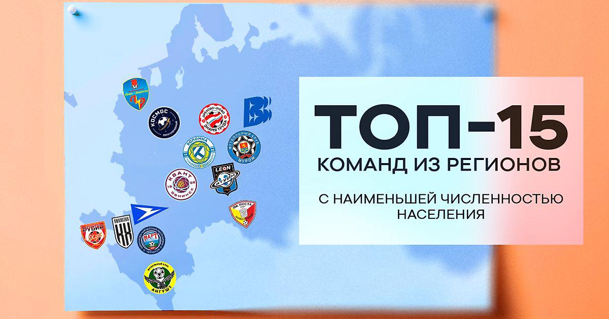 Топ-15 команд из регионов с наименьшей численностью населения