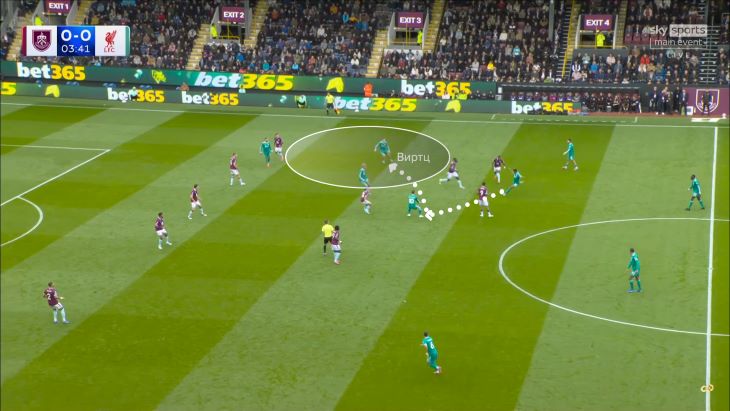 Вот против «Бернли» «Ливерпуль» мог через Алексиса Мак Аллистера вывести немца в свободную зону, но Райан Гравенберх перевел налево.
