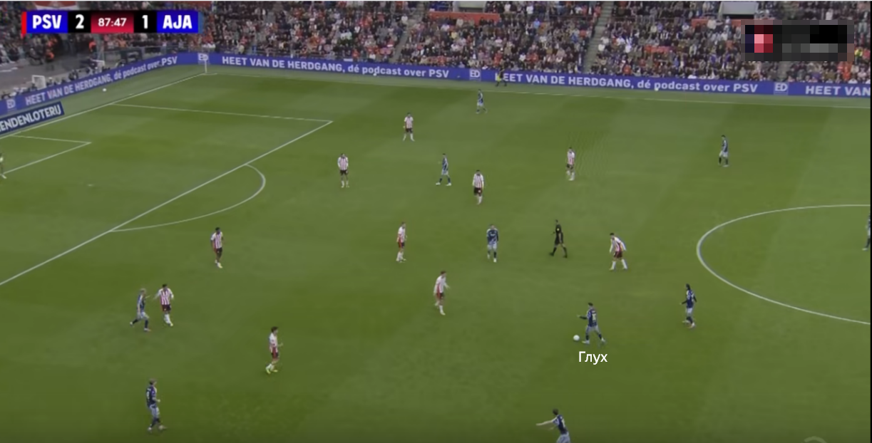 Баланс в игре сместился. «Аякс» перевел коробку передач в режим «активный прессинг». Теперь команда не окапывалась в низком блоке, игроки провоцировали ошибки соперника, оказывая давление прямо у чужой штрафной. На отрезках «Аякс» даже забирал контроль над игрой. Общие соотношения владения стабилизировалось. 51 на 49 по второму тайму в пользу ПСВ.