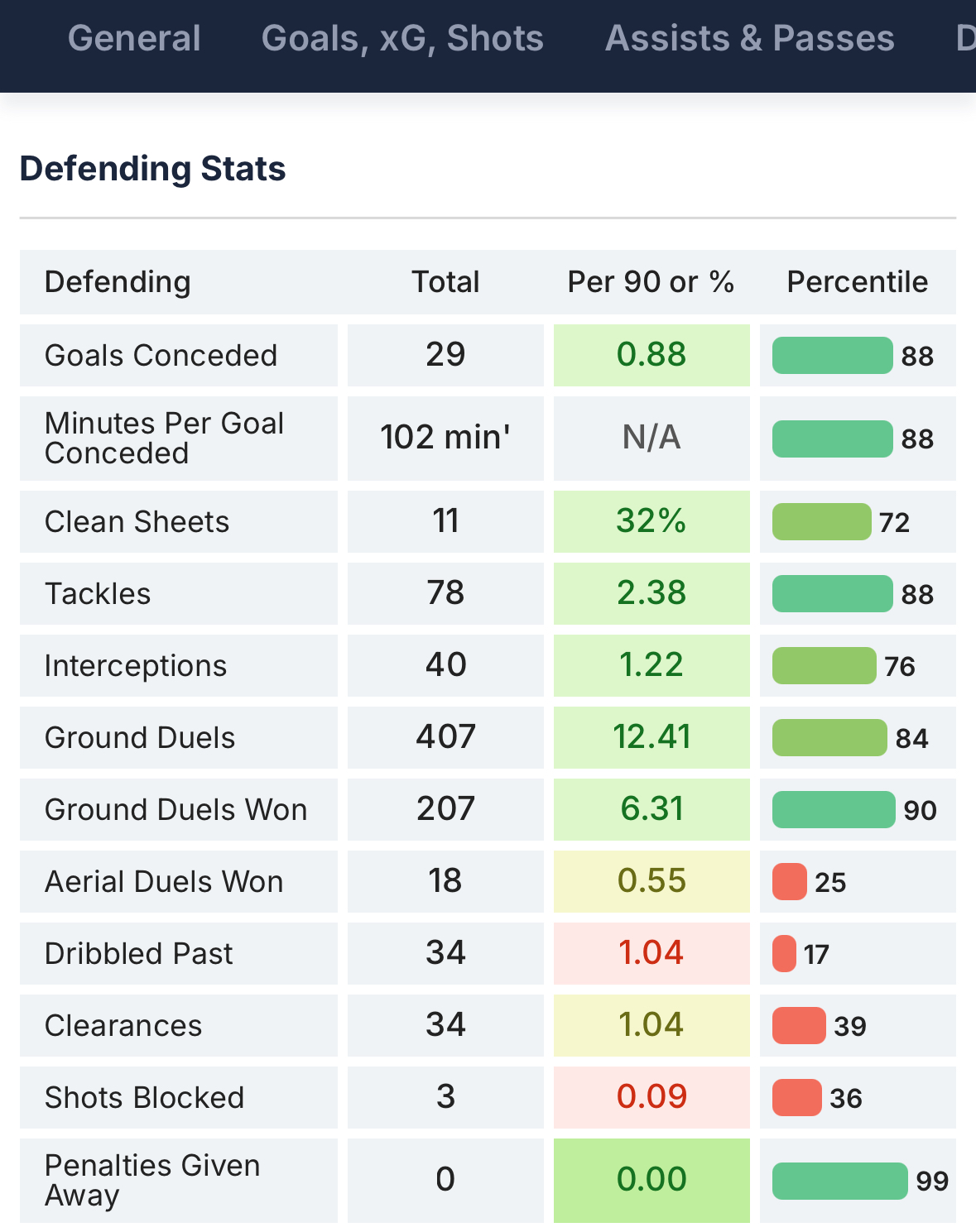 Давайте посмотрим на часть его статистических данных в последнем сезоне в Суперлиге (выше) и сравним это с текущими показателями по итогам прошедших туров РПЛ (ниже).