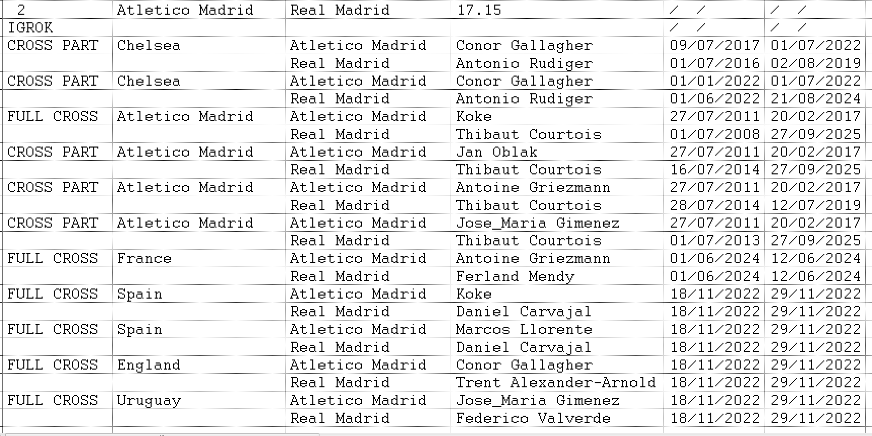 3.Соперники играли за один и тот же клуб (возможно в разное время- NO CROSS)