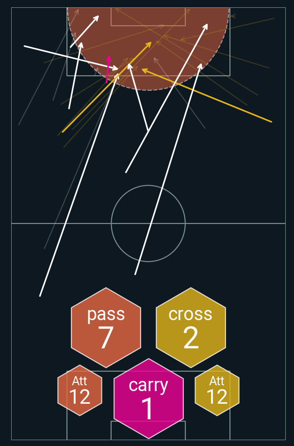 Эти выпады, преимущественно, строились на лонгболлах. Прямолинейность (prog dist / total dist) атак «матрасников» в 43.9% не удивляет никого, а вот эффективность может удивить, ведь 4 из 10 deep entries были осуществлены именно длинными передачами