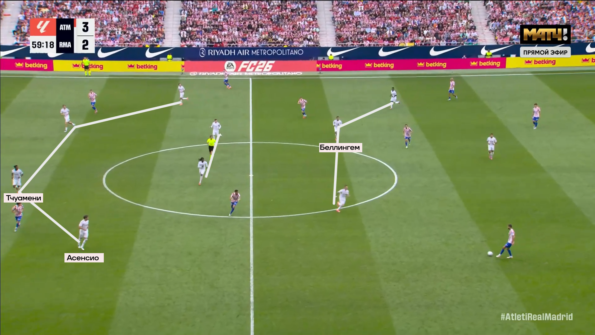 При этом, в отсутствии Тчуамени в средней линии начался настоящий хаос, ведь Беллингем, который должен был насыщать эту зону, не успевал почти никогда.