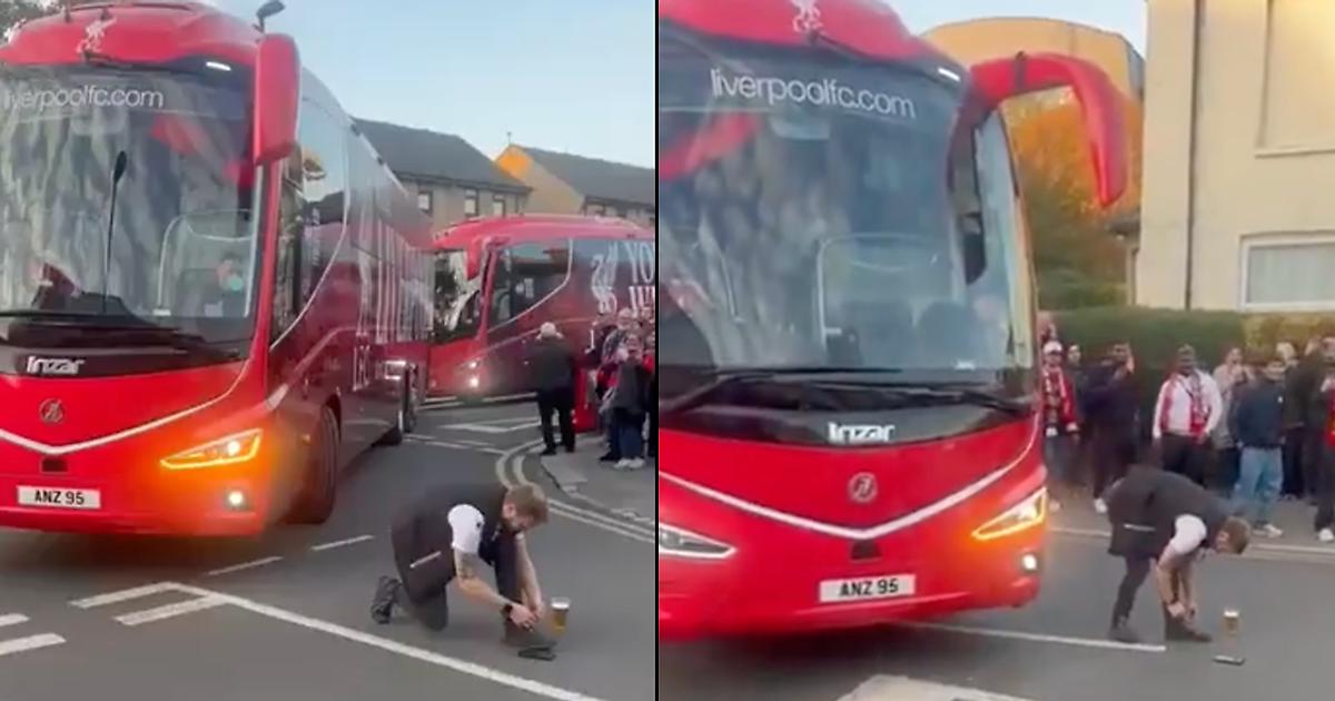 Так издевался над «Ливерпулем» фанат «Пэлас»: не давал проехать автобусу команды. Якобы минуту завязывал шнурки!