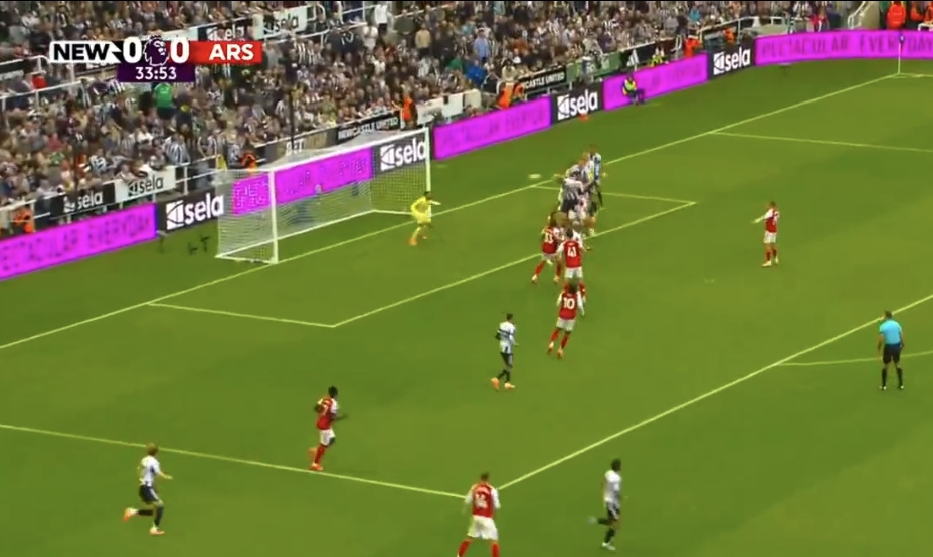 «Арсенал» начал гостевой матч по-хозяйски. С первых же минут «канониры» завладели инициативой и стали проводить множество атак на ворота Ника Поупа. Главным действующим лицом был Эберечи Эзе: вратарь хозяев дважды вытаскивал опасные удары новичка «Арсенала» на 5-й и 29-й минутах. Также очень активен был Виктор Дьокереш. Забегая вперёд, выскажу мнение, что сегодня был лучший матч шведа в АПЛ, пускай он не забил и под конец заметно устал. Первый спорный эпизод, кстати, был с его непосредственным участием. Малик Тшау неудачно отдал мяч назад, Дьокереш подобрал круглого и был сбит Ником Поупом. Сначала Джарред Джиллет указал на точку, но после просмотра видеоповтора отменил своё решение.