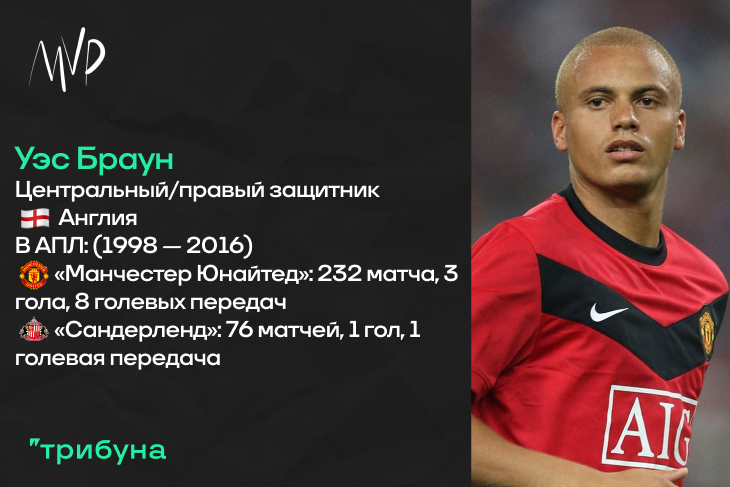 Начнем мы сегодня с игрока, большую часть карьеры проведшего в составе топ-клуба, что очень нехарактерно для данного формата. Но обойти стороной воспитанника «Манчестер Юнайтед», как мне кажется, нельзя. Уэс, являющийся уроженцем Манчестера, впервые добрался до главной команды «красных дьяволов» в 1996 году, а двумя годами позднее дебютировал на уровне АПЛ. Фергюсон небыстро подтягивал юного англичанина к основе, но в великом для клуба сезоне 1998/99 Браун отыграл уже четырнадцать матчей в Чемпионате, а также был футболистом старта на групповом этапе победной Лиги Чемпионов. К слову, тогда его даже признавали лучшим молодым игроком «МЮ», ведь закрыть Уэс мог сразу две позиции – в центре обороны и на правом ее фланге. Но уже в 1999 году в карьере англичанина случилась первая беда – тяжелая травма колена, за которой последовал полностью пропущенный сезон.