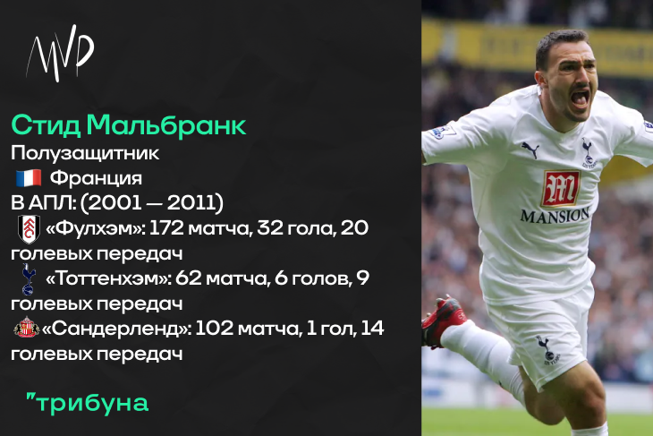Не так часто в материалах данной рубрики фигурируют французские футболисты, хотя было их в АПЛ конца нулевых достаточно много. Один из них – родившийся в Бельгии воспитанник «Лиона» Стид Мальбранк. Хорошо проявивший себя в составе «ткачей» полузащитник переехал в Англию в 2001 году, когда столичный «Фулхэм» заплатил за него 6.60 миллиона Евро. В новом Чемпионате француз сразу же начал демонстрировать прекрасный уровень игры – восемь голов и железобетонное место в стартовом составе. «Дачники» в ту пору были очень крепкими середняками. Во втором сезоне в Англии у Стида случилась даже голевая серия – он забивал в четырех матчах АПЛ подряд (пострадали «Манчестер Сити», «Арсенал», «Астон Вилла» и «Вест Бромвич»). Но, однозначно, лучшим годом для француза в «Фулхэме» стал сезон-2003/04 – позиция правого вингера, шесть голов и тринадцать ассистов. Так, например, в октябрьском гостевом поединке с «МЮ» именно гол и две голевые Мальбранка принесли лондонцам победу.
