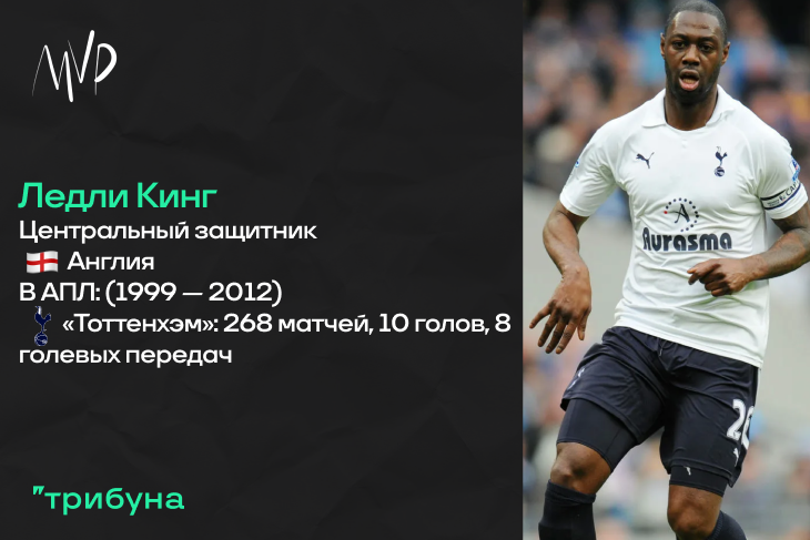 Ледли Кинг – настоящий пример, образец преданности родному клубу. Он родился в Лондоне, выпустился из академии «Тоттенхэма» и ни разу за профессиональную карьеру не надевал футболку другого коллектива. Этот игрок олицетворяет собой еще и целую эпоху, ныне уже уходящую в прошлое – высокий и сильных центральных защитников, без особой техники, но вожаков на поле. И, к сожалению, Кинг – это еще и про нереализованный потенциал. Травмы сломали его карьеру. Конечно, этих причин достаточно для включения в подборку. Но я назову еще двадцать шестой номер защитника, аналогичный тому, под которым выступал Джон Терри. Ну и звание автора самого быстрого гола в истории АПЛ, разумеется.