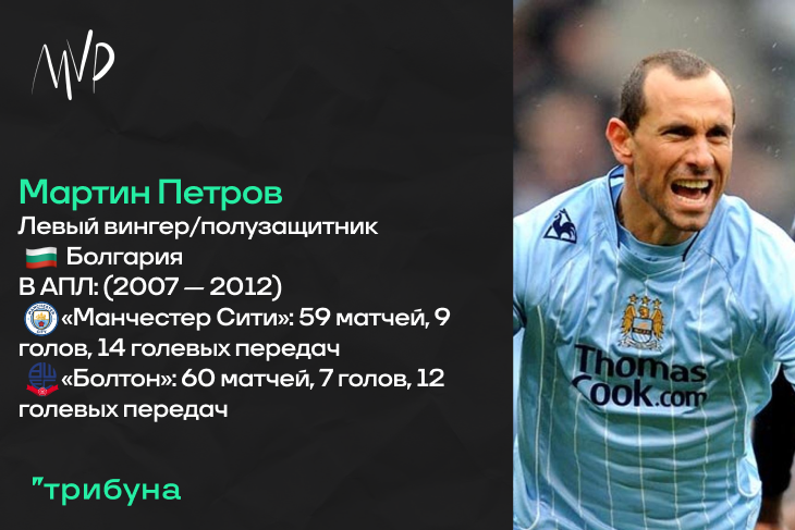 В конце нулевых годов в АПЛ было несколько крутых игроков из Болгарии. Сегодня мы рассмотрим одного из них. Фланговый футболист Мартин Петров, в молодом возрасте ярко проявивший себя в швейцарском «Серветте» и ставший звездой на уровне немецкой Бундеслиги с «Вольфсбургом», в Англию переехал после периода выступлений за мадридский «Атлетико». Находясь в Испании, Петров немало пропустил из-за травмы, но когда был здоров, играл очень неплохо. Летом 2007 года «Манчестер Сити», в ту пору еще не снабжаемый нефтяными миллионами, купил у «матрасников» болгарина за 7.00 миллионов Евро. И начал в Англии Мартин очень круто – после небольшой адаптации, начиная с седьмого тура, Петров стал одним из самых полезных футболистов атаки «горожан». Команда Свена-Йорана Эрикссона активно набирала очки, а левый вингер из Болгарии совершал много результативных действий – всего за розыгрыш Чемпионата у него таковых набралось шестнадцать. Начало было положено отличное.
