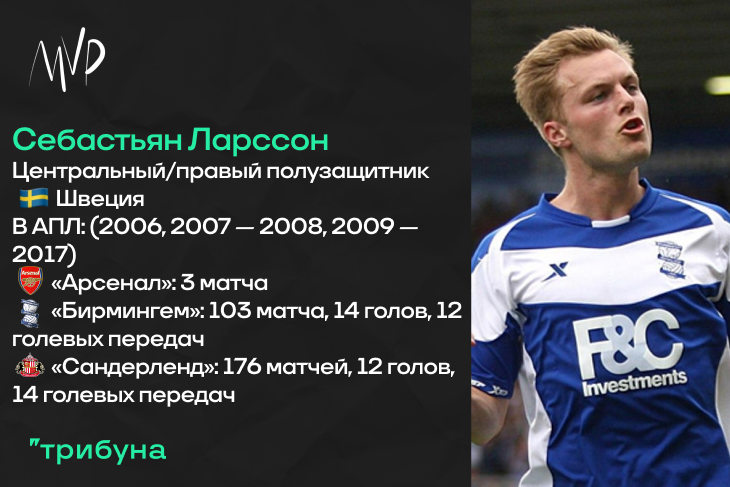 Шведский полузащитник Себастьян Ларссон – выпускник академии лондонского «Арсенала», в составе которого и дебютировал в Чемпионате Англии. Впрочем, конечно, те три матча в сезоне-2005/06 вряд ли кто вспомнит. По сути, начиналось все для Себастьяна с аренды в «Бирмингем Сити». Первый год в этом коллективе Ларссон провел в Чемпионшипе, своей игрой поспособствовав выходу команды в Премьер Лигу. К сожалению, закрепиться на этом уровне клуб из одноименного города не сумел, но вряд ли в этом есть вина Ларссона – на счету молодого шведского полузащитника шесть голов и три результативные передачи. В ту пору «Бирмингем» можно было назвать командой-лифтом, ведь после года во втором дивизионе они вновь вернулись в Премьер Лигу. Себастьян, конечно же, снова был причастен к быстрому возвращению на высший уровень.