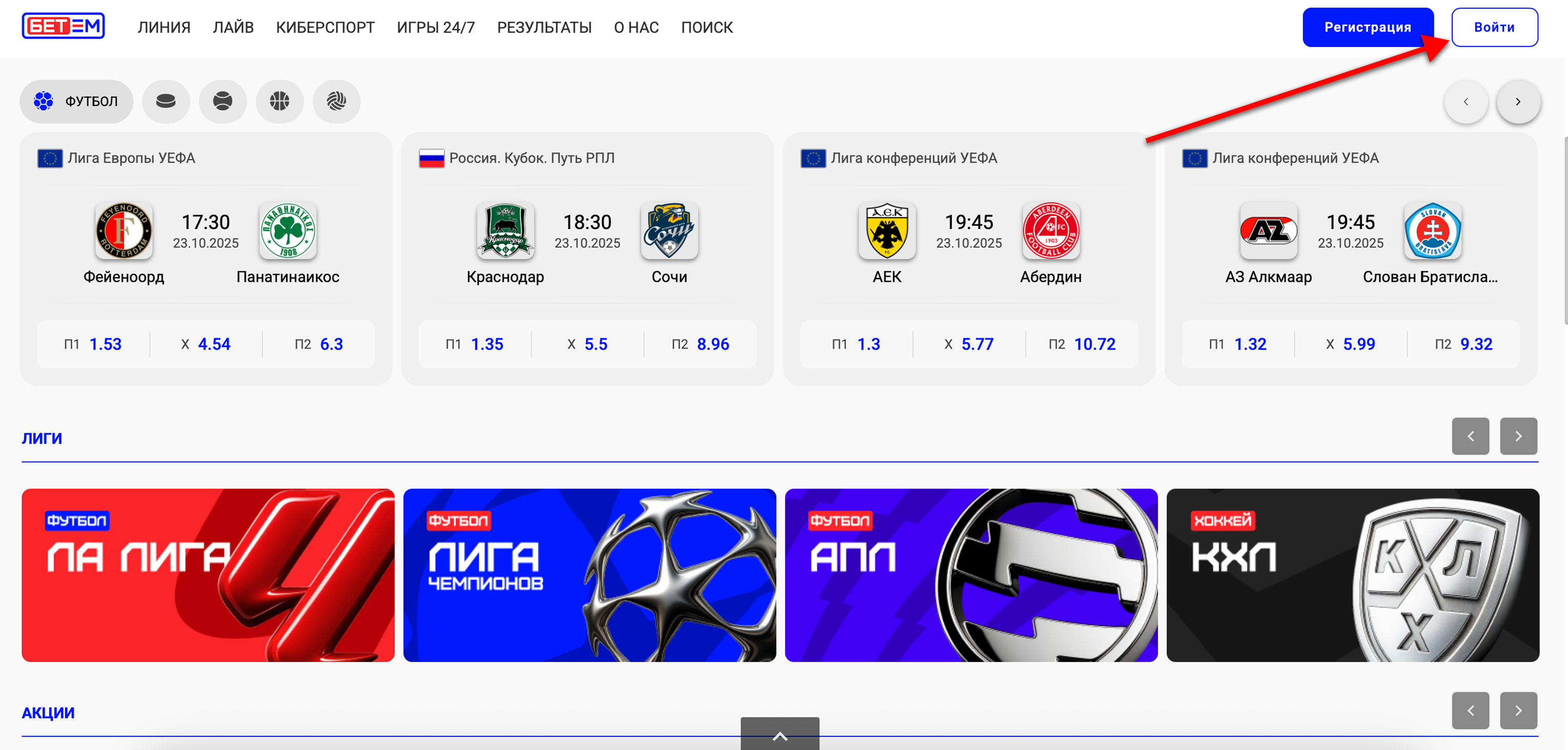 - Перейти на официальный сайт компании и нажать на клавишу «вход», расположенную в правой верхней части экрана;