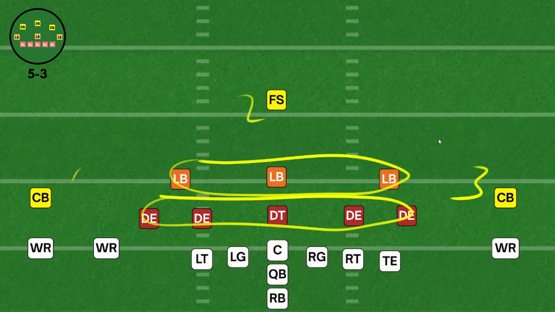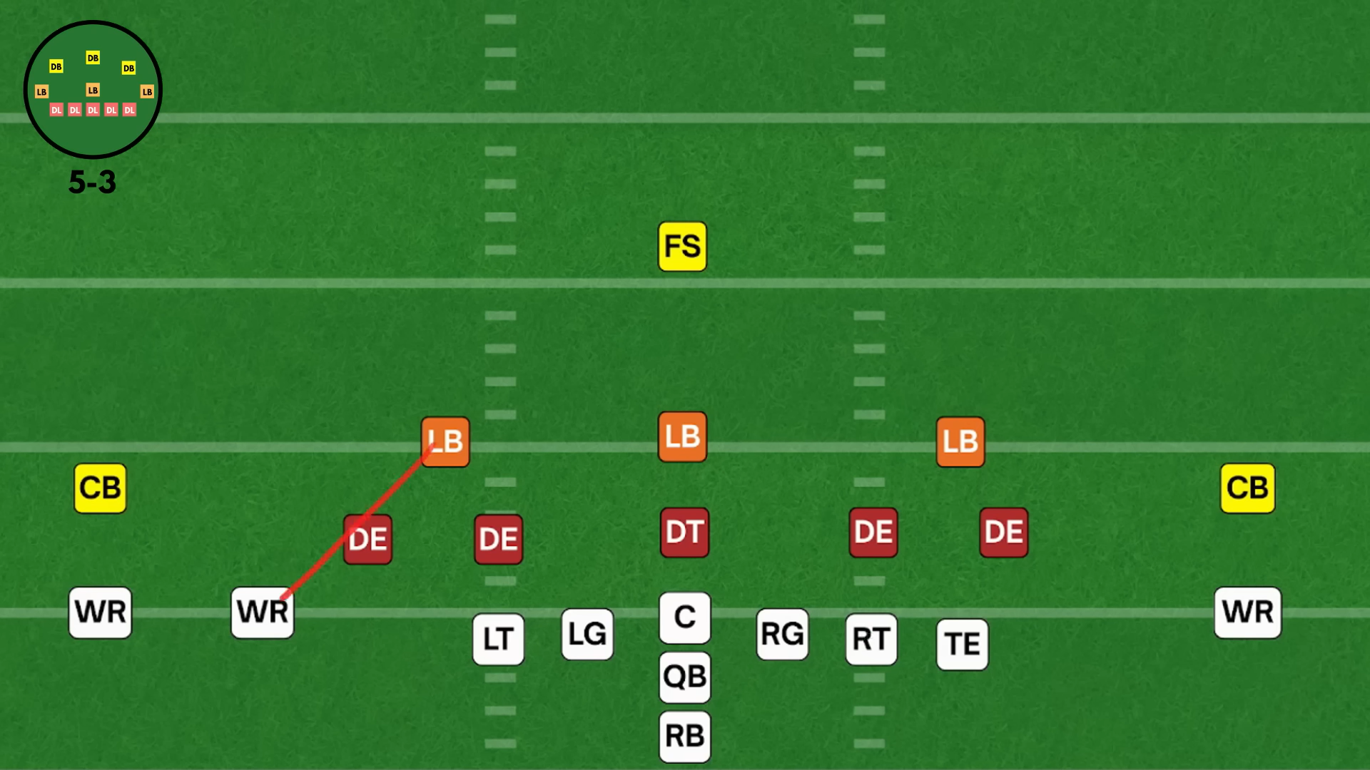 В 5-3 формации на поле располагаются пять линейных, три лайнбекера и три ди-бека. На одного ди-лайнера меньше, чем в формации 6-2, но на одного лайнбекера больше.
