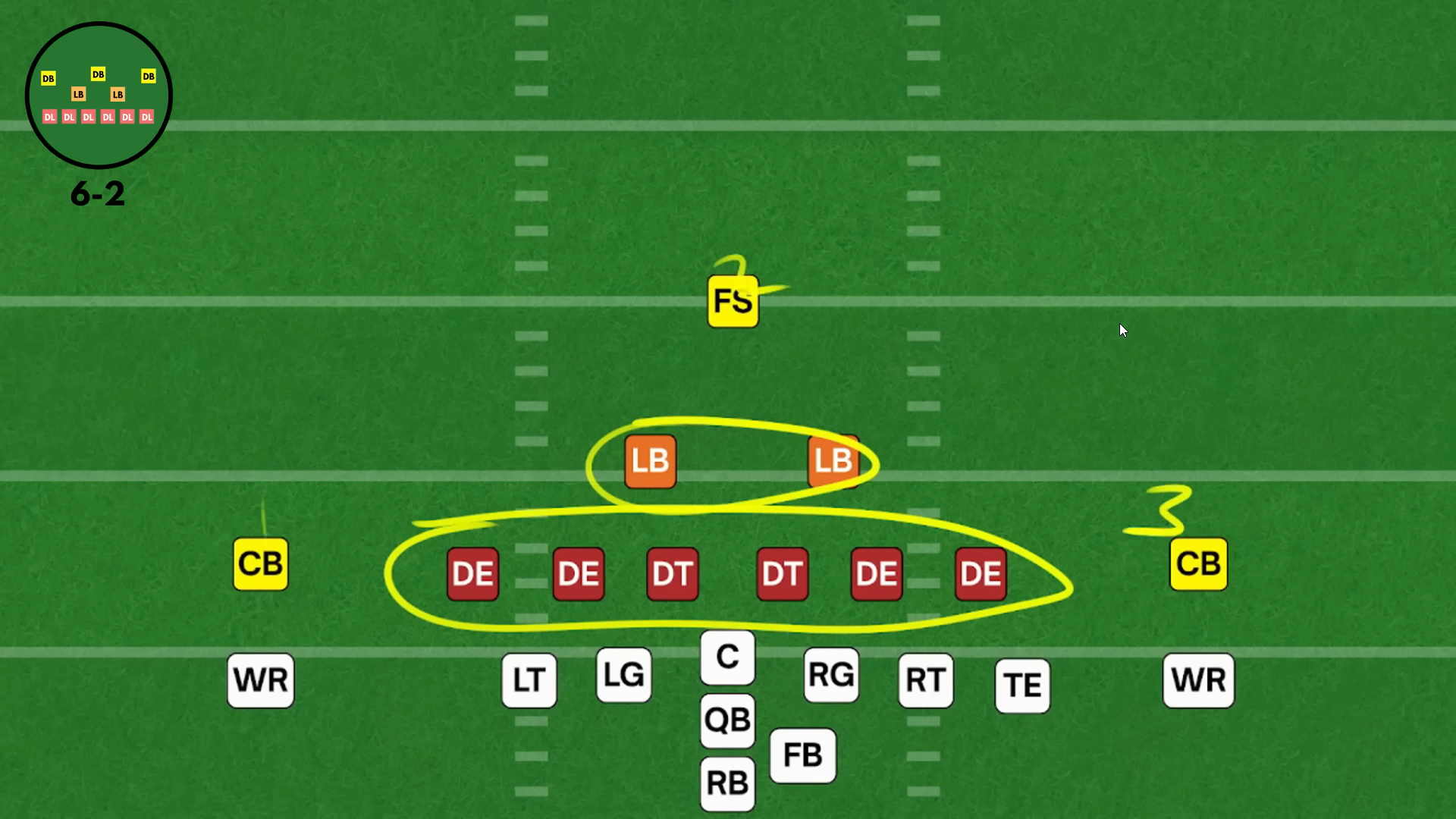 6-2 формациия: в защите шесть игроков ди-лайна и два лайнбекера, отсюда и ее название — 6-2.