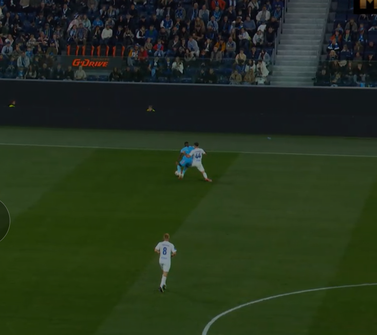 32 минута .Кружит по полю Вендел ,убегая от Ду Кейроса. Тот догоняет, но с помощью рук. Фол.