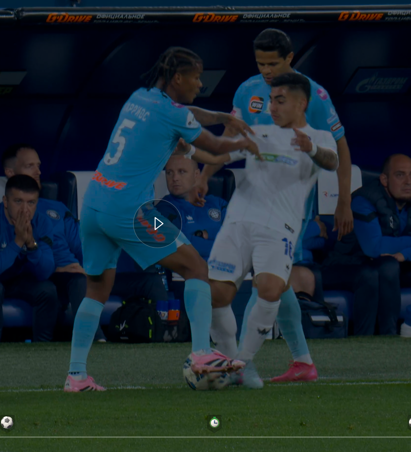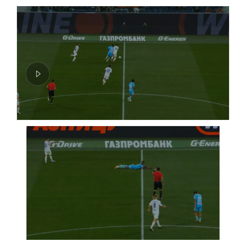 6 минута. Отдаёт Арбитр мяч Оренбургу во время позиционной атаки питерского клуба, но судя по всему мяч в аут не ушел. Эпизод вызвал бурное недовольство игроков сине - бело - голубых.