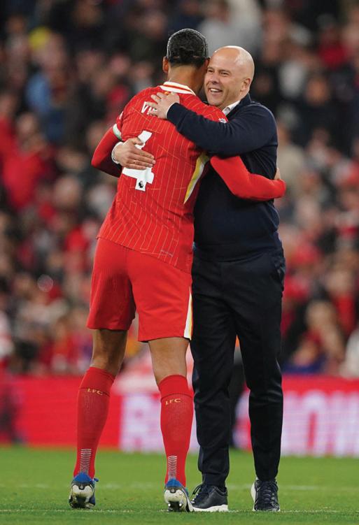 «Арне Слот! На-на, на-на, на-на!» — пели болельщики, как и Юрген Клопп, приветствовавший и утвердивший Слота в качестве своего преемника в последнем домашнем матче прошлой кампании. «Все, что я могу сделать, — это выразить свою признательность Юргену Клоппу, — сказал Слот, взяв в руки микрофон, и на этот раз встал в центре поля «Энфилда», чтобы песней почтить человека, за которым он тренировал с таким впечатляющим, неожиданным, мгновенным успехом, и который так любезно его принял. — Юрген Клопп, На-на, на-на, на-на». Затем последовала имитация фирменного движения Клоппа. Он подбежал к трибунам, чтобы сделать три удара кулаком в воздух, которых так жаждали болельщики весь сезон.