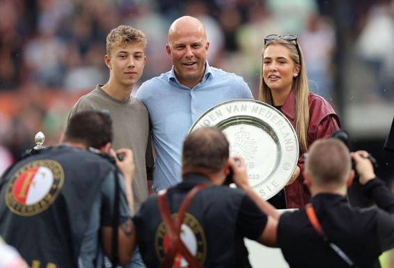 8. В окружении семьи на поле после первого триумфа «Фейеноорда» в чемпионате с 2017 года.