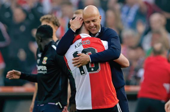 7. Эмоциональные объятия с капитаном Оркуном Кёкчу после победы «Фейеноорда» в матче за чемпионский титул.