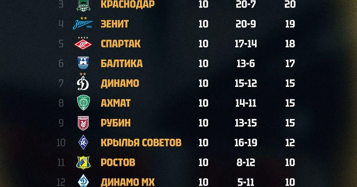 Прошла 1/3 Чемпионата России. Кажется мы уже увидели и первые взлеты команд, и их первые падения. Можно проанализировать и немного что-то спрогнозировать.