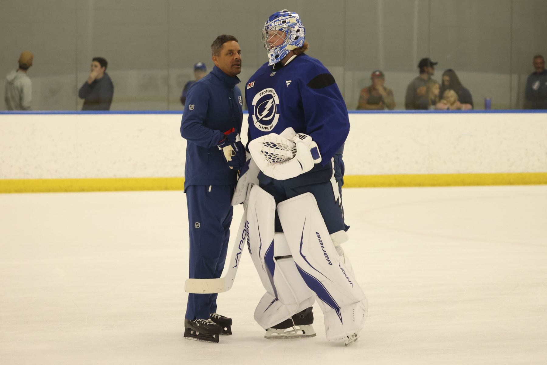 Коньки Андрея Василевского, по всей видимости, коснулись льда, поэтому, хотя вратарь «Тампа-Бэй» до сих пор не тренировался с основной группой со второго дня лагеря, главный тренер Джон Купер технически был прав, когда на прошлой неделе предрёк, что стартовый голкипер вернётся на лёд в понедельник.