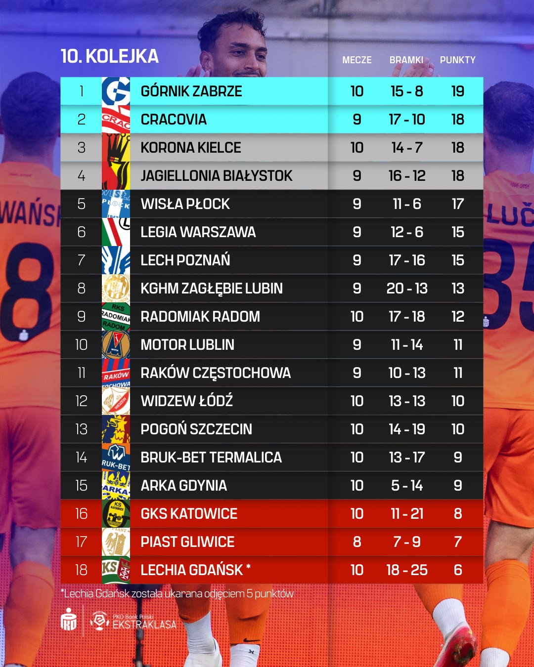 Центральным матчем 10-го тура был поединок в Кракове между лидером таблицы «Краковией» и вторым «Гурником». Забжане подготовились к встрече с краковчанами и в первые сорок пять минут заставили соперника играть в несвойственный ему футбол.
