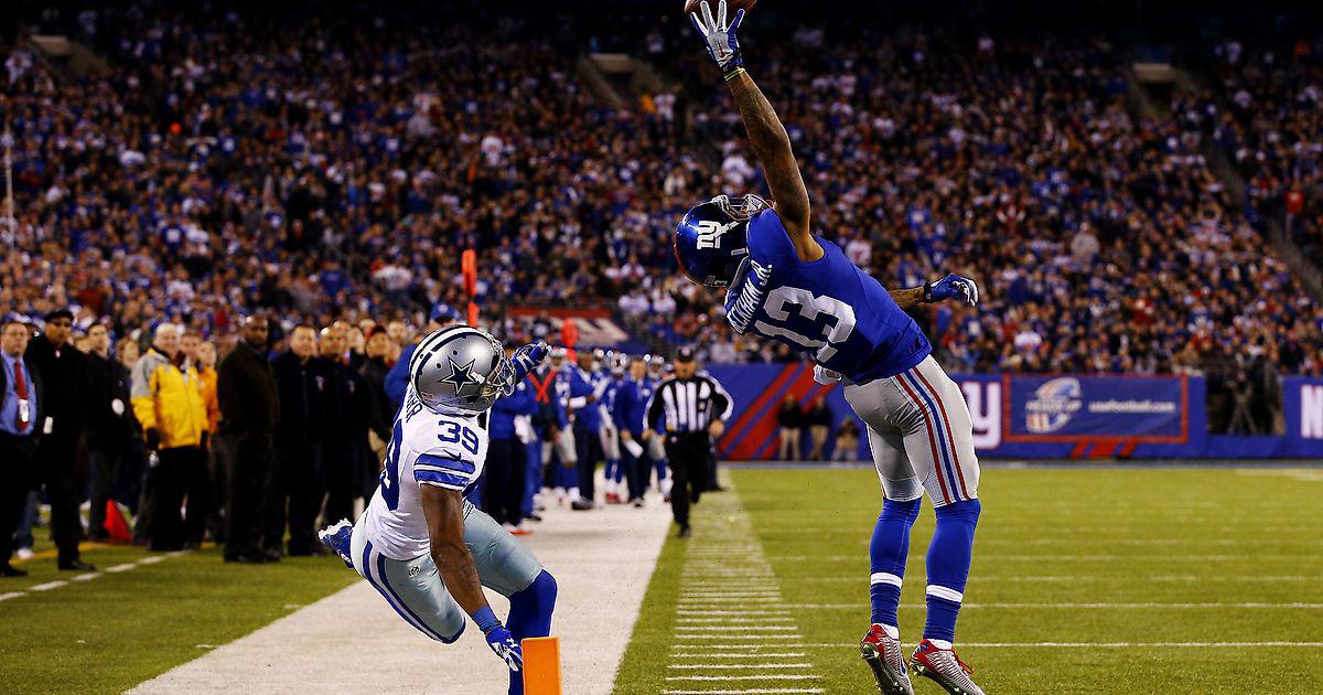 В первые мгновения после того, как новичок-ресивер «Нью-Йорк Джайентс» Оделл Бэкхем-младший сделал тот приём — а как ещё это назвать, кроме как «тот приём»? — он понятия не имел, что он останется навсегда, как в истории, так и в его собственной жизни. Всё это было просто инстинктом, понимаете? «Джайентс» играли с «Каубойз» в воскресенье вечером перед Днём благодарения. Первый розыгрыш второй четверти. «Джайентс» владели мячом на 43-ярдовой линии половины поля «Далласа».