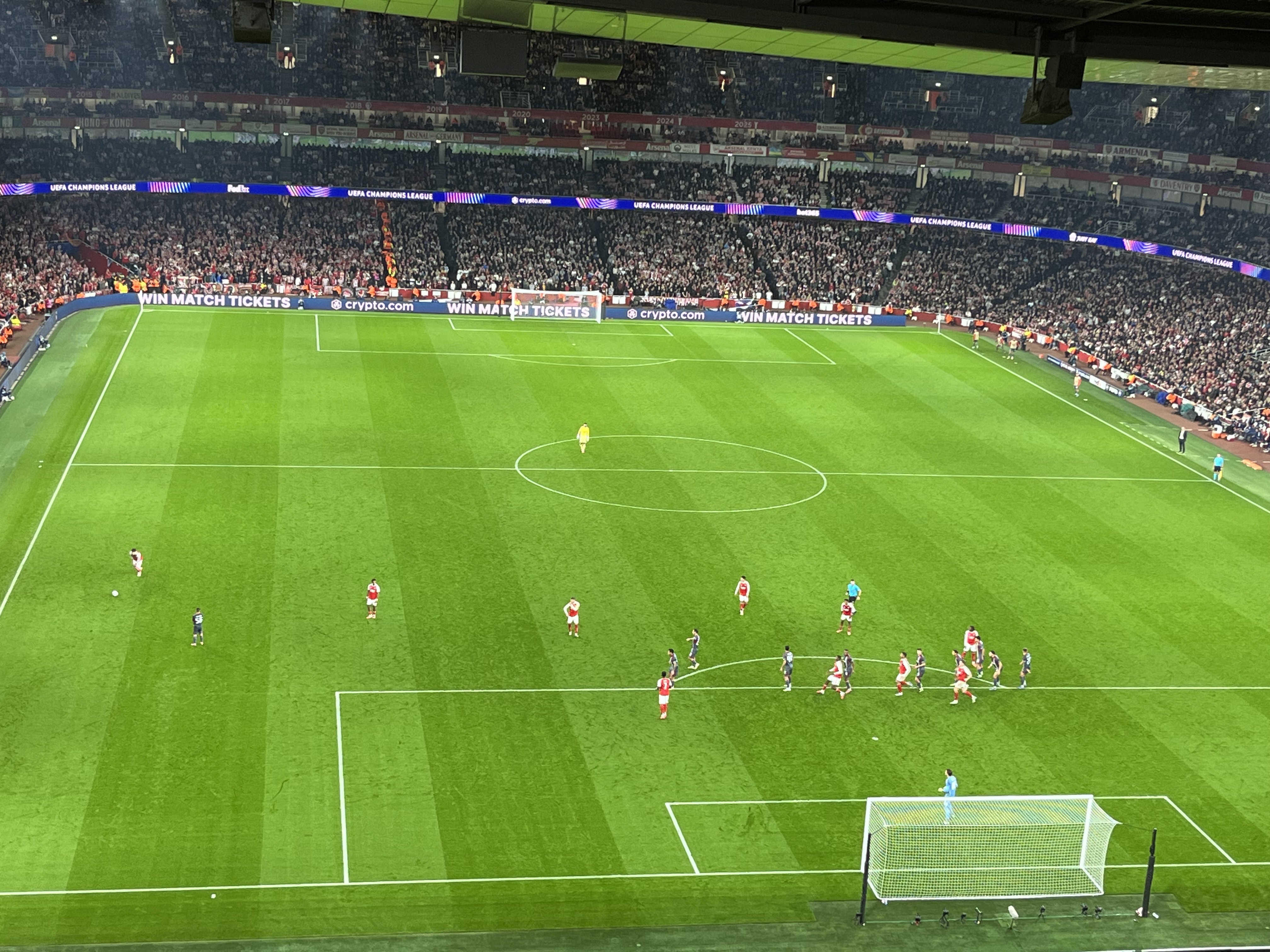 Объявление команд- демострация новой суперсилы «Арсенала» – наличия двух составов. По сравнению с матчем в Ньюкасле аж шесть изменений. В отсутствие Сака все игроки получают примерно равную порцию аплодисментов. Стадион заполнен процентов на 95, атмосфера – спокойная. Матч совершенно рядовой – к ЛЧ в северном Лондоне на третий сезон уже привыкли, а с новым форматом матчей стало еще больше. Есть ощущение, что игра с «Вест Хэмом» в субботу, по итогам которой можно выйти в лидеры АПЛ (ведь «Ливерпуль» играет в гостях с «Челси») волнует фанатов (и, возможно, игроков) больше.