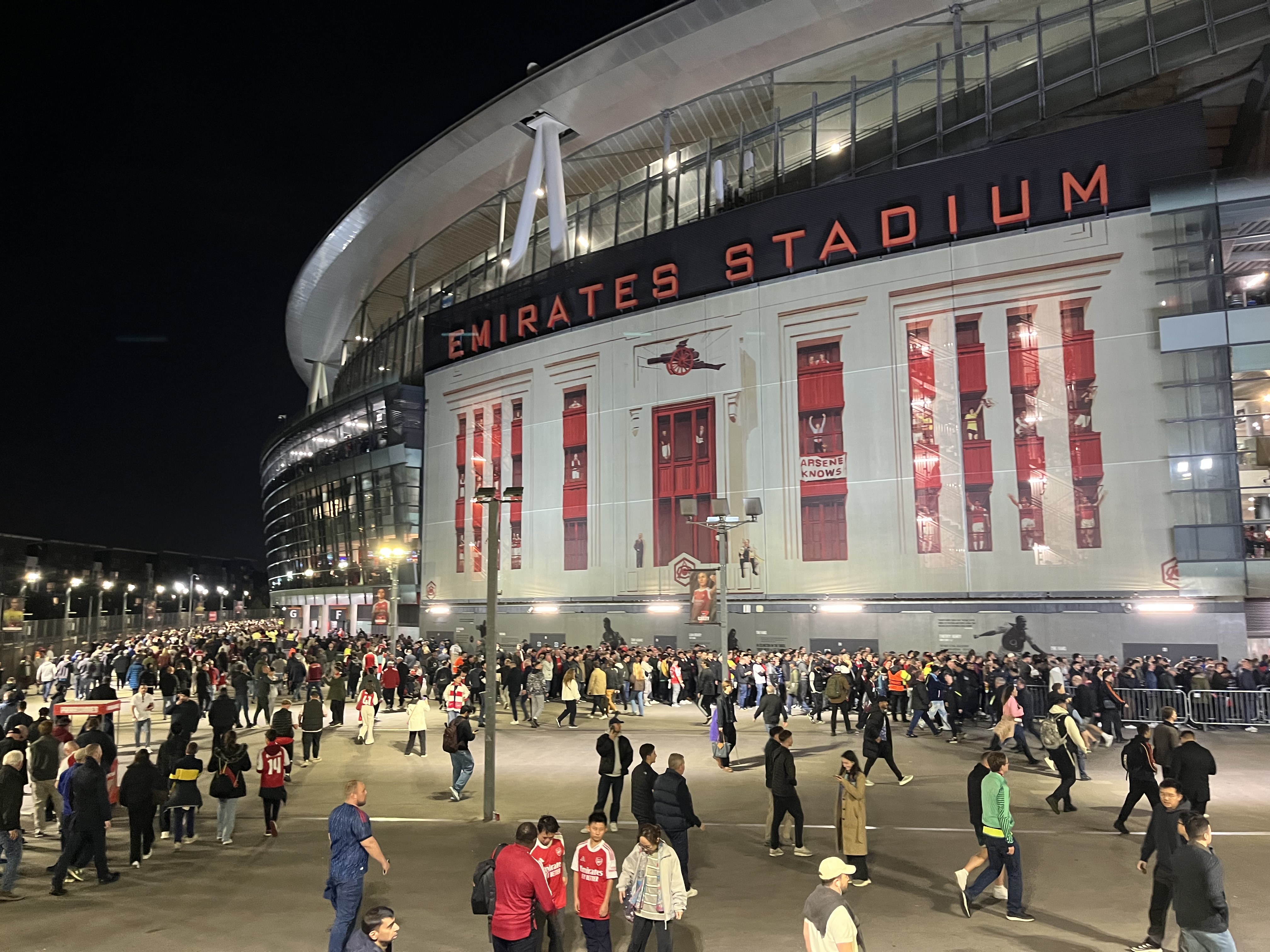 Идя в среду вечером на «Эмирейтс», поймал себя на мысли о том, как же поход на стадион в лигочемпионский вечер отличается от дневных игр АПЛ. В выходные больше времени, поэтому я обычно выхожу на более дальней от стадиона станции метро (остановка «Арсенал» уж слишком близко к арене), чтобы сделать со стаканчиком кофе в руке полноценную прогулку до «Эмирейтс», сначала встречая отдельные ручейки болельщиков, а потом постепенно сливаясь с общей толпой. ЛЧ – другое дело. Это вечер, уже темно, уже прохладно. Времени впритык – еду из офиса на противоположном конце Лондона (в метро немало таких же болельщиков в офисной одежде) и, наконец, выскакиваю на станции «Арсенал».