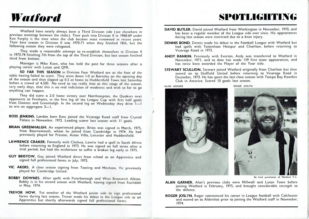 В последнюю субботу августа 1975 года футбольный клуб «Уотфорд» отправился в графство Дарем на игру против соперников по четвертому дивизиону, команды «Дарлингтон», которую их менеджер Майк Кин назвал «обязательной победой». Несмотря на то, что за три месяца до этого «Уотфорд» был низведен из Третьего в Четвертый дивизион, новый сезон он начал в приподнятом настроении. «Клуб твердо намерен продлить свое пребывание в Четвертом дивизионе не дольше, чем это необходимо, — уверенно заявил председатель совета директоров «Уотфорда». — Мы можем заверить всех наших болельщиков, что никакие усилия не будут лишними для достижения цели — немедленного повышения в классе».