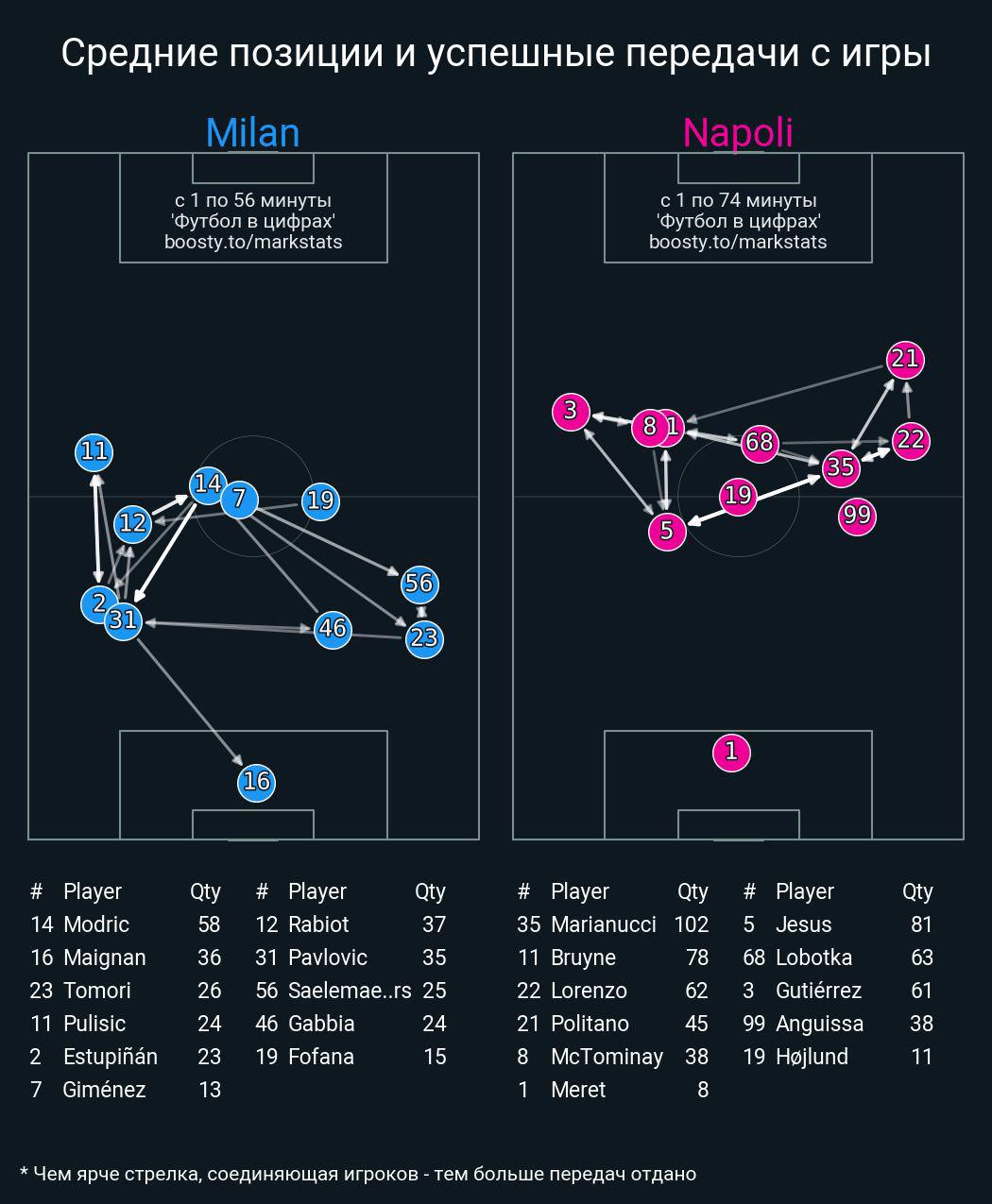 Главное оружие «Милана» — пространство и скорость линии атаки. В переходах «Наполи» захлёбывался: Юсуфф Фофана едва не убежал один на один, всего за четыре передачи.