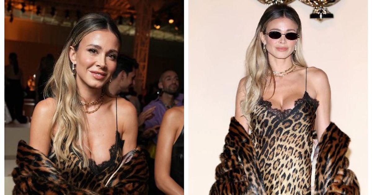 Телеведущая Дилетта Леотта порадовала поклонников платьем с глубоким вырезом и леопардовым принтом на Неделе моды в Милане.