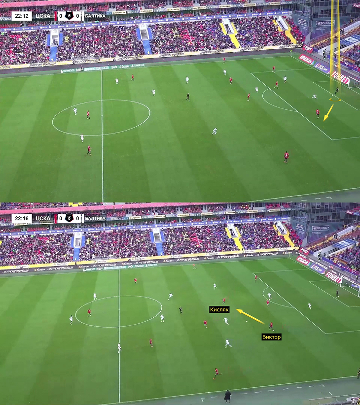 ЦСКА прижал даже тягучую в обороне «Балтику»: в РПЛ еще никто не бил 12 раз из штрафной в ворота команды Андрея Талалаева (предыдущие рекорды – 8 от «Акрона» и «Локо»). Челестини, хоть и дожал гостей на последнем угловом, организовал одну из лучших атак сезона. В ней собраны все достоинства ЦСКА: