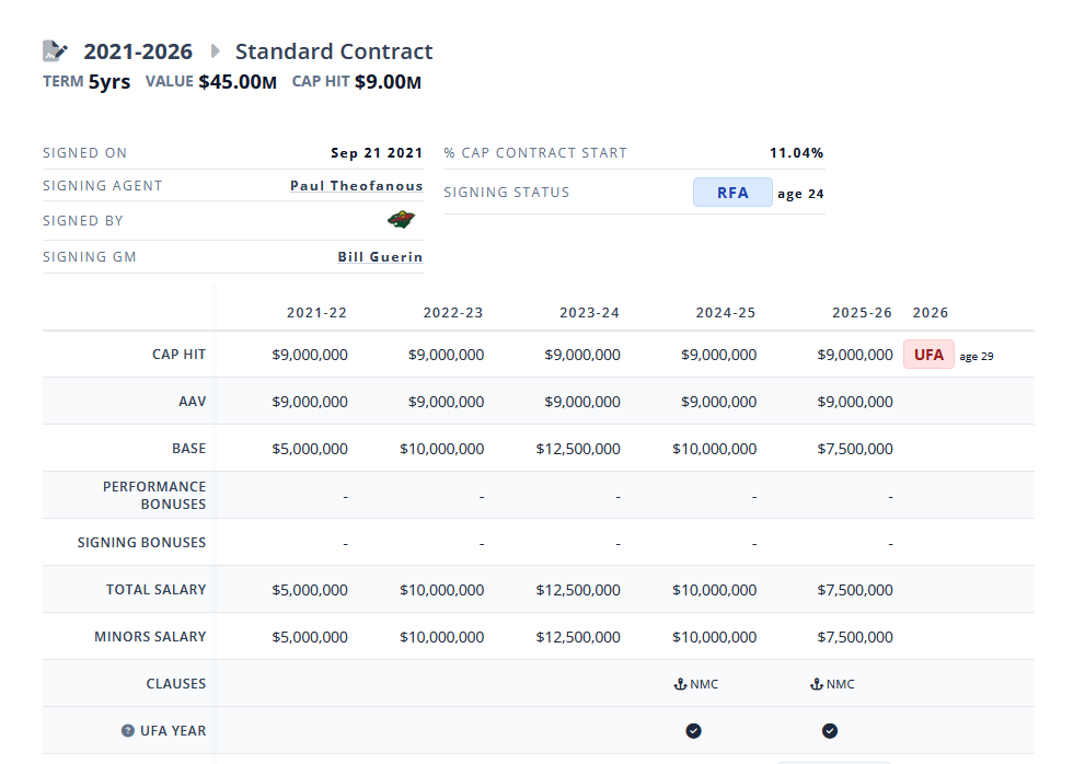 Услышав это, Капризов и его агент, вцепились мертвой хваткой голодных пираний в генерального менеджера команды Билла Герина, пытаясь откусить кусок побольше. Что же, в итоге им это удалось, с чем их можно поздравить.