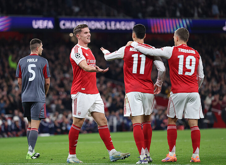 «Арсенал» разобрал «Олимпиакос» (2:0). Уже на 12-й минуте Габриэл Мартинелли добил в сетку после удара Виктора Дьокереша в штангу. Бразилец отличился и в прошлой игре ЛЧ с «Атлетиком» (1+1). Второй мяч пришлось ждать почти до свистка: уже в добавленное Букайо Сака попал между ног вратарю.