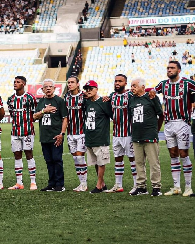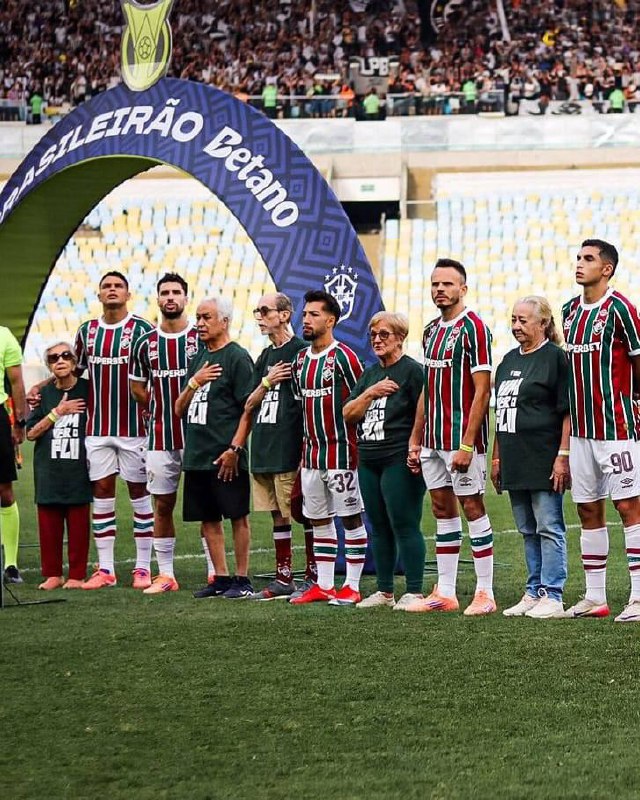 В 25-м туре чемпионата Бразилии «Флуминенсе» вышел на матч с «Ботафого» н с представителями старшего поколения: футболисты и пожилые болельщики исполнили национальный гимн.