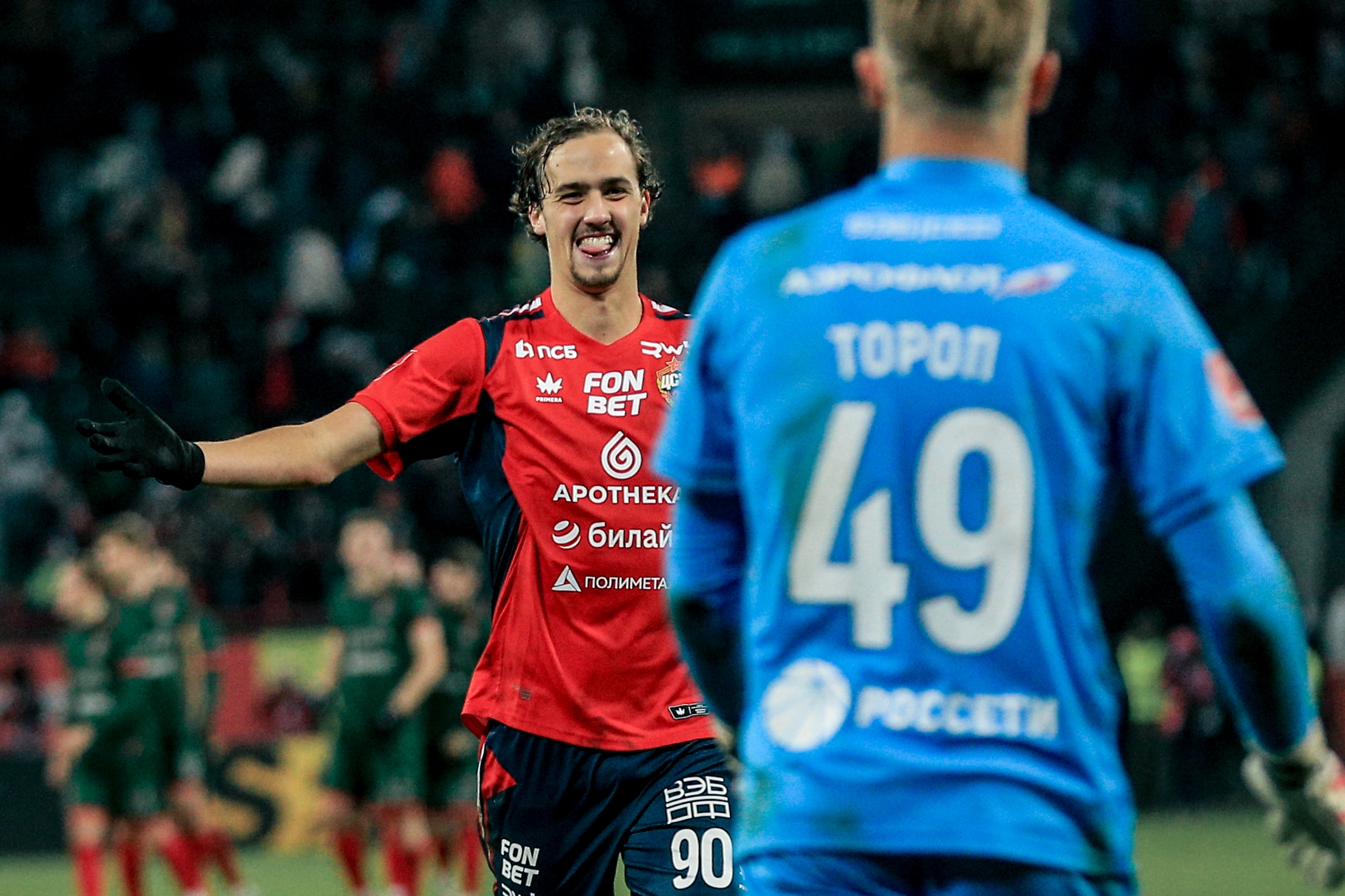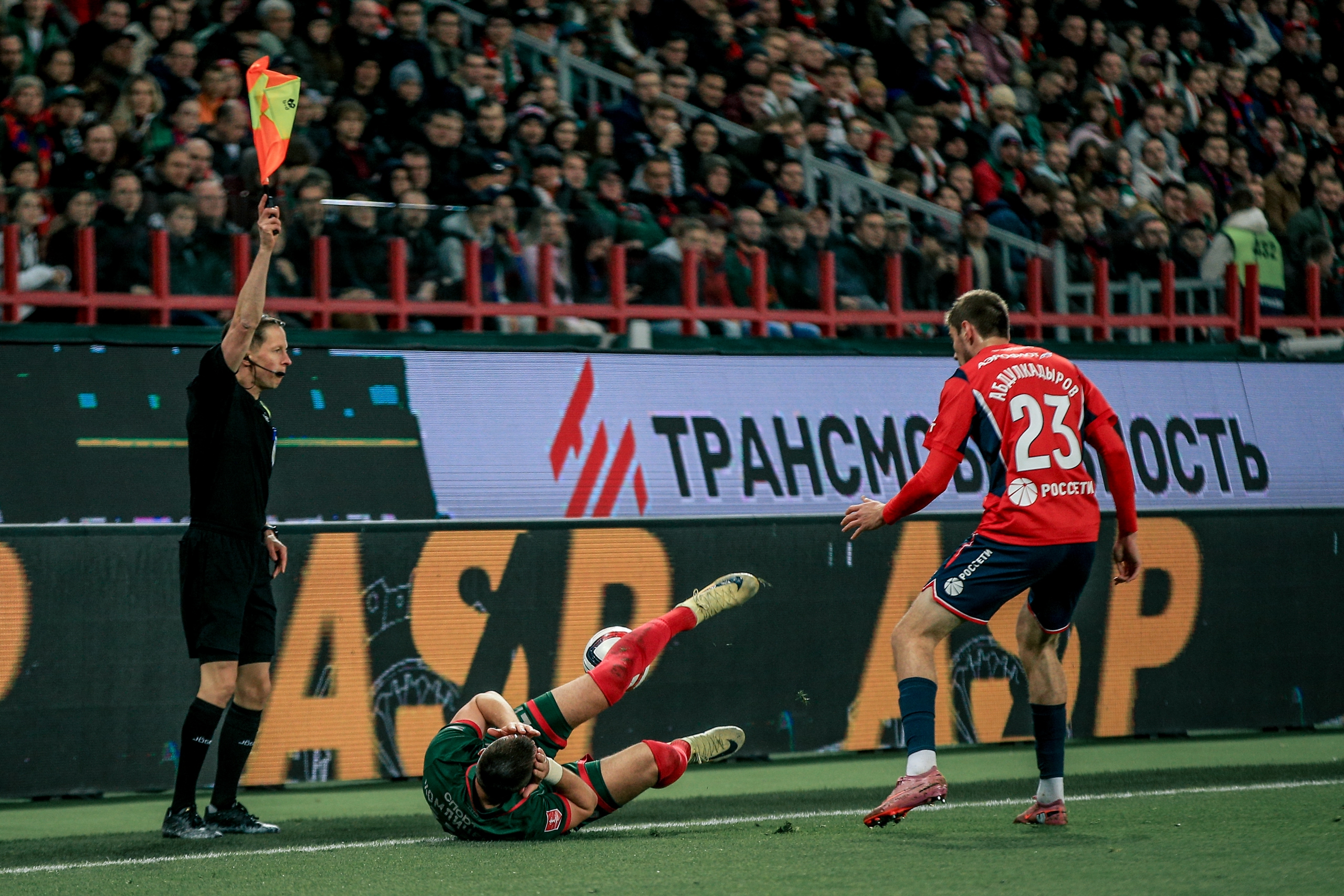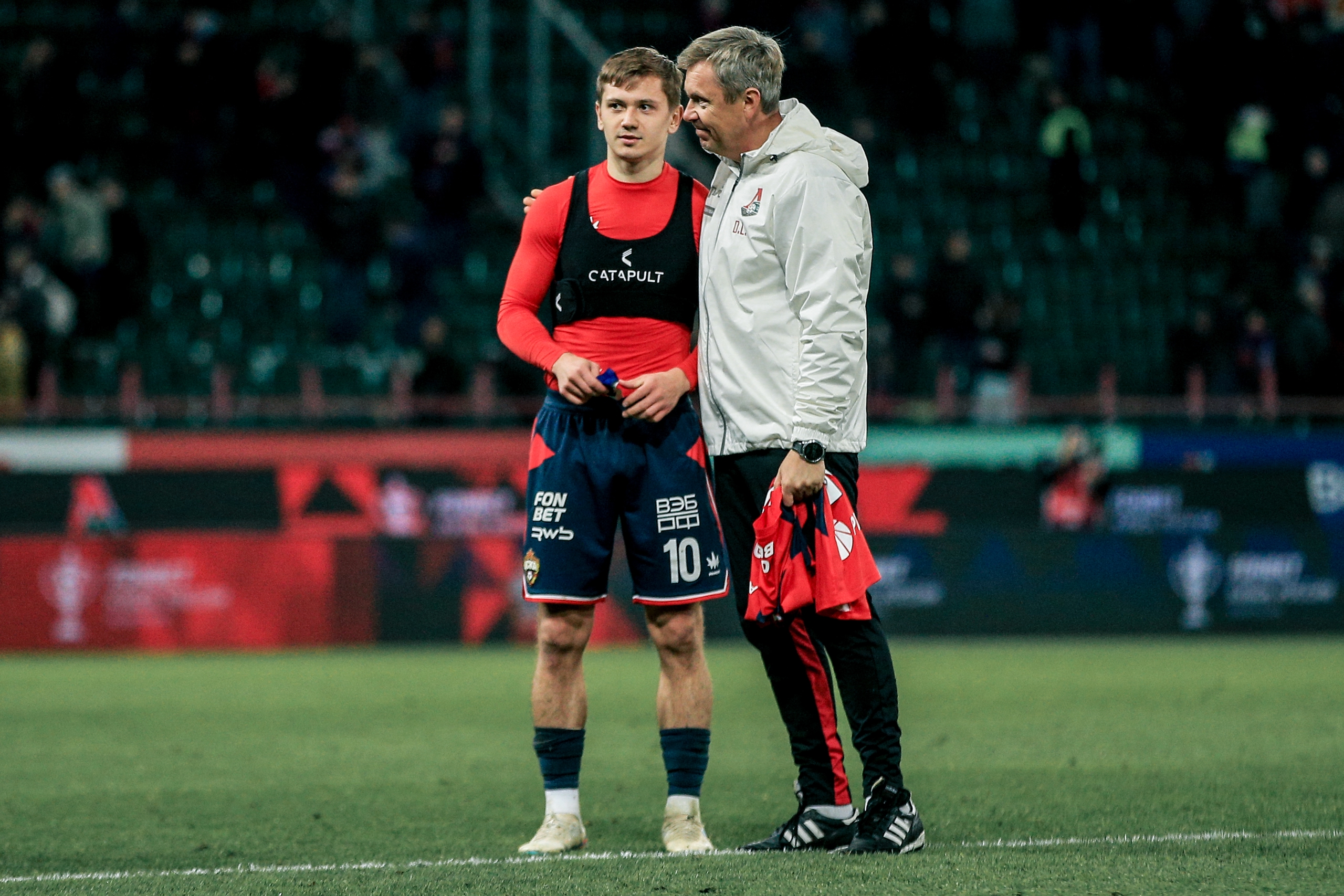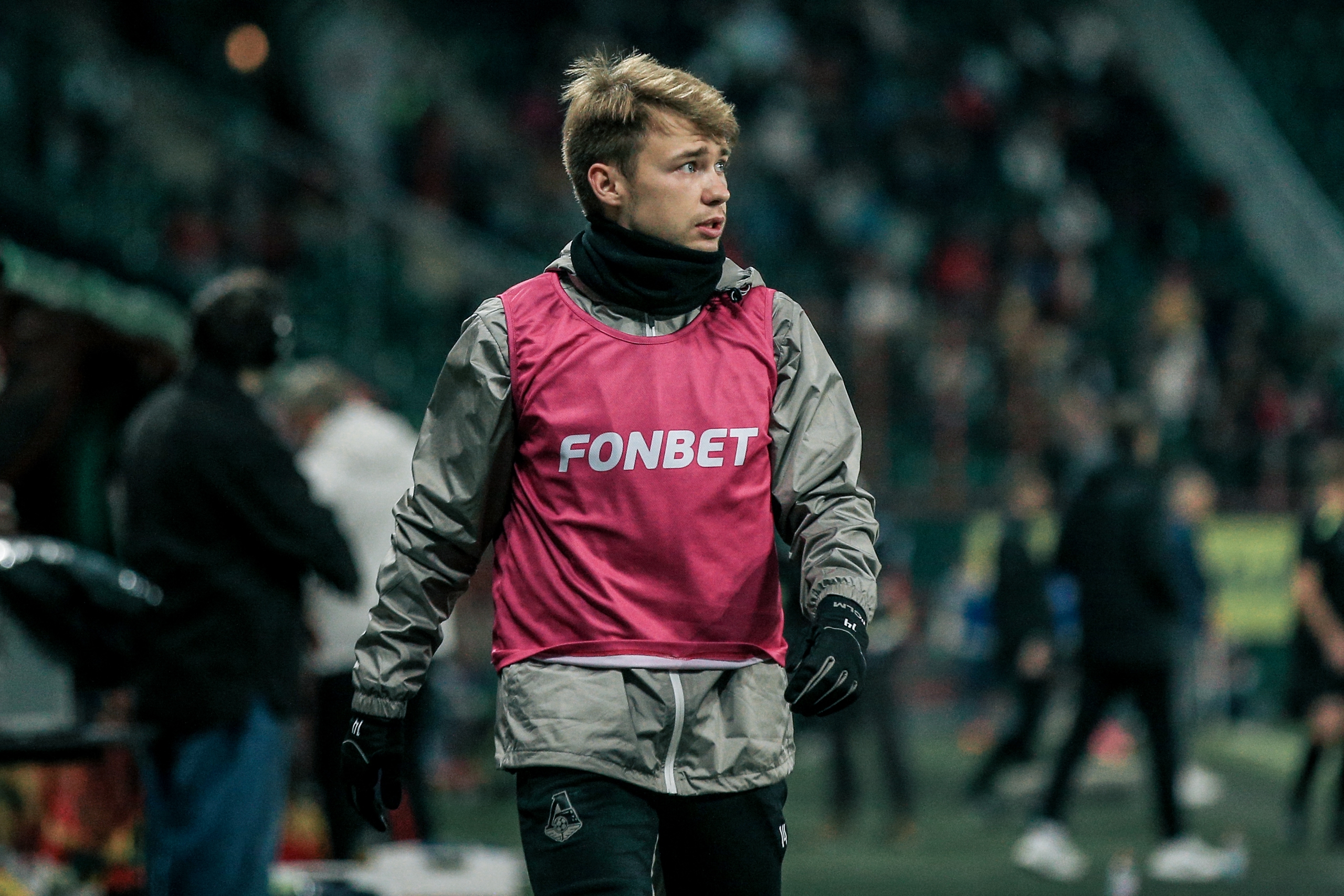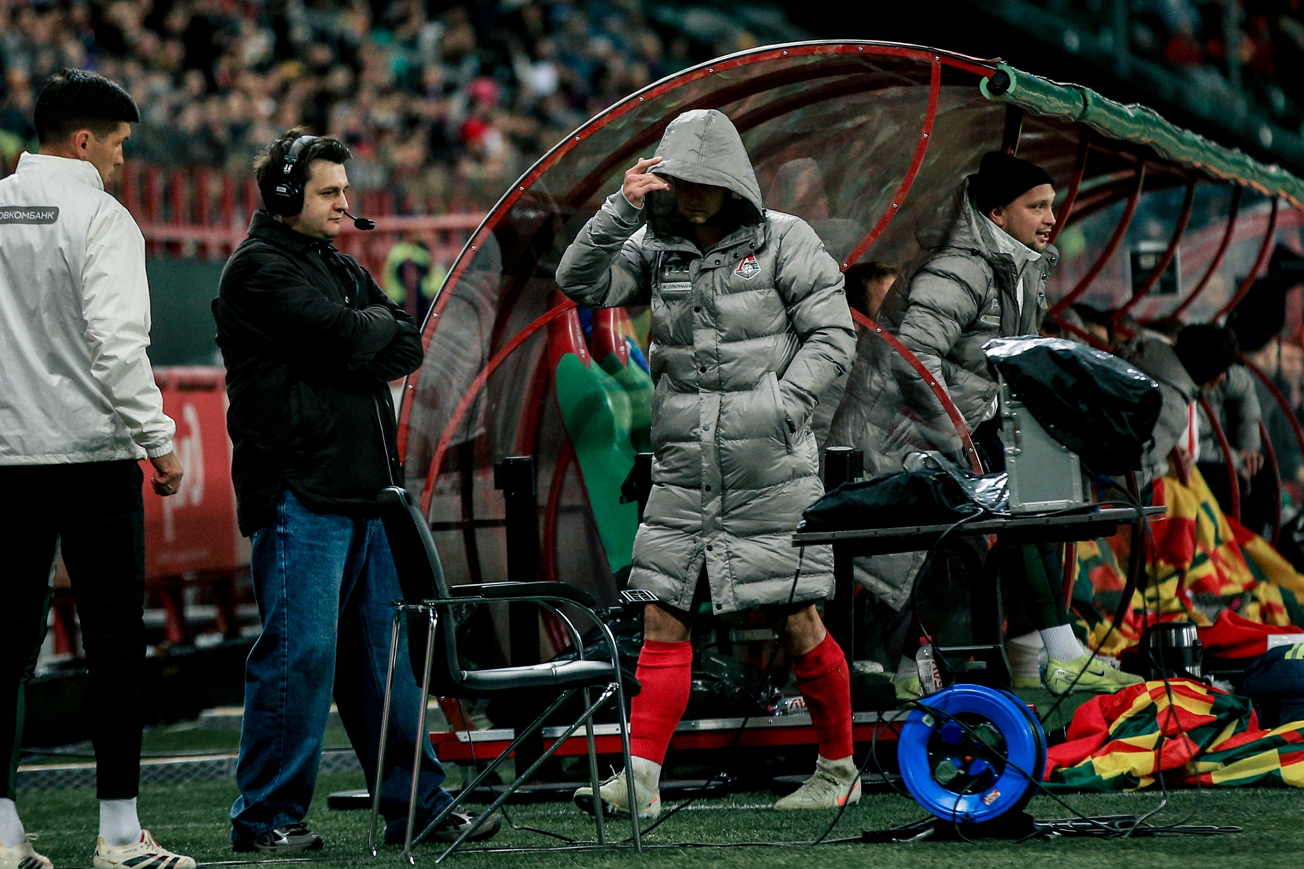 Салтыков на скамейке, Лёвин получает футболку от Облякова. Фото с матча «Локомотив» — ЦСКА
