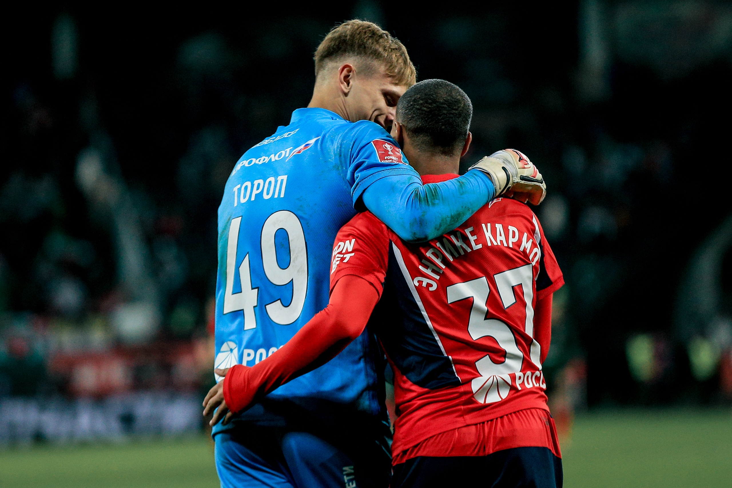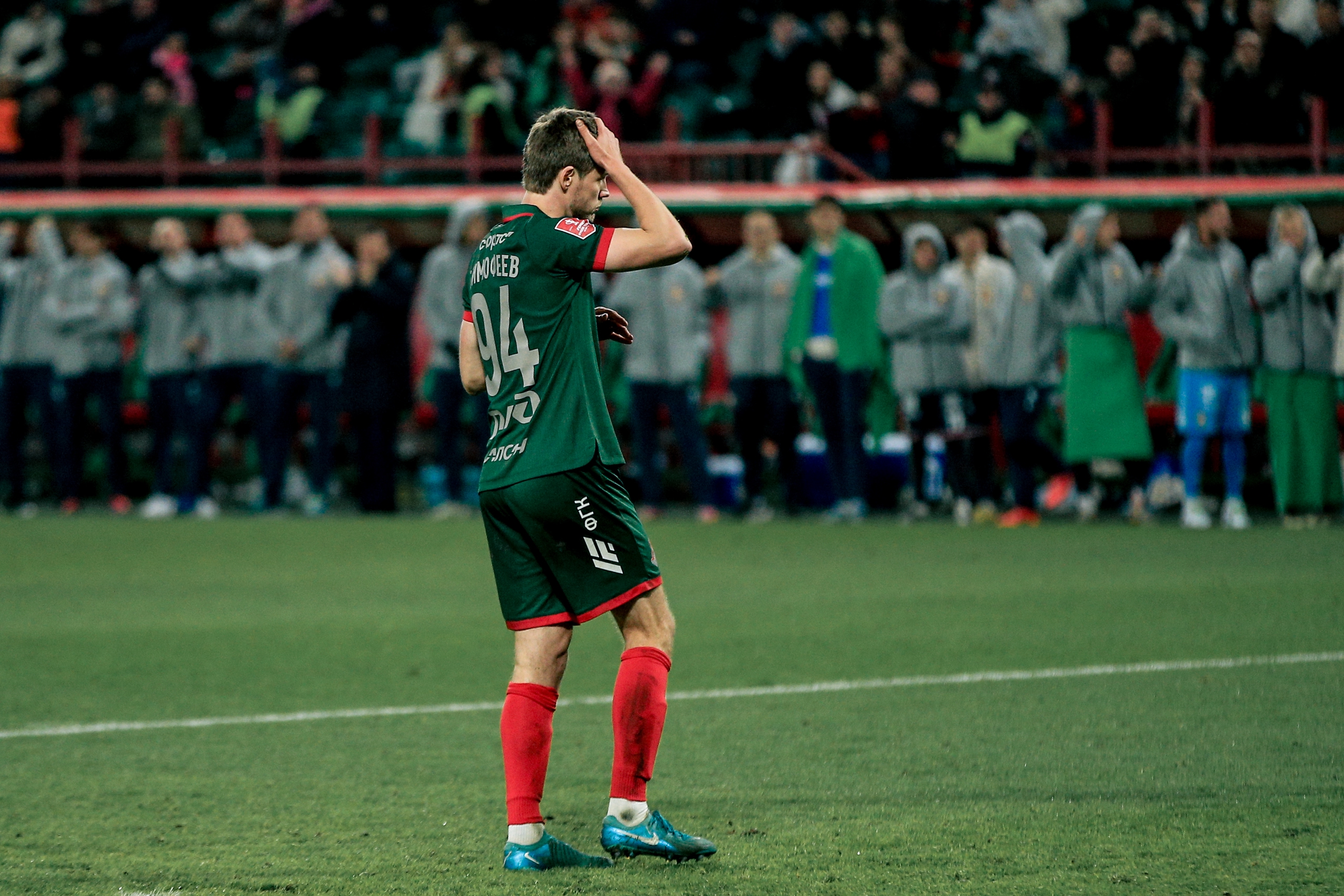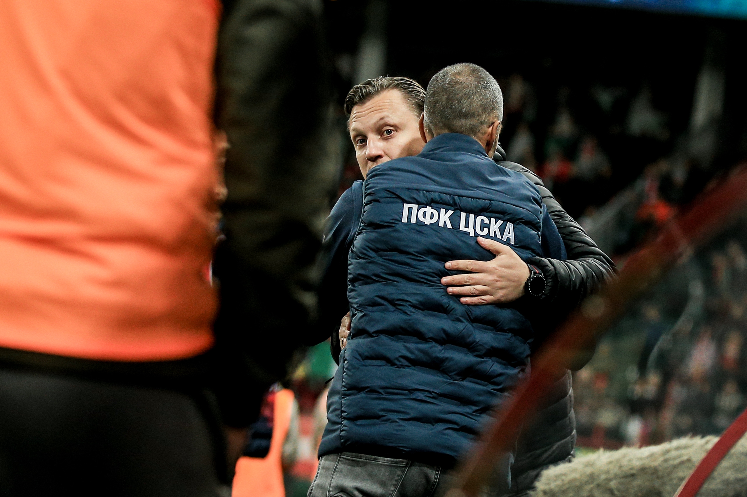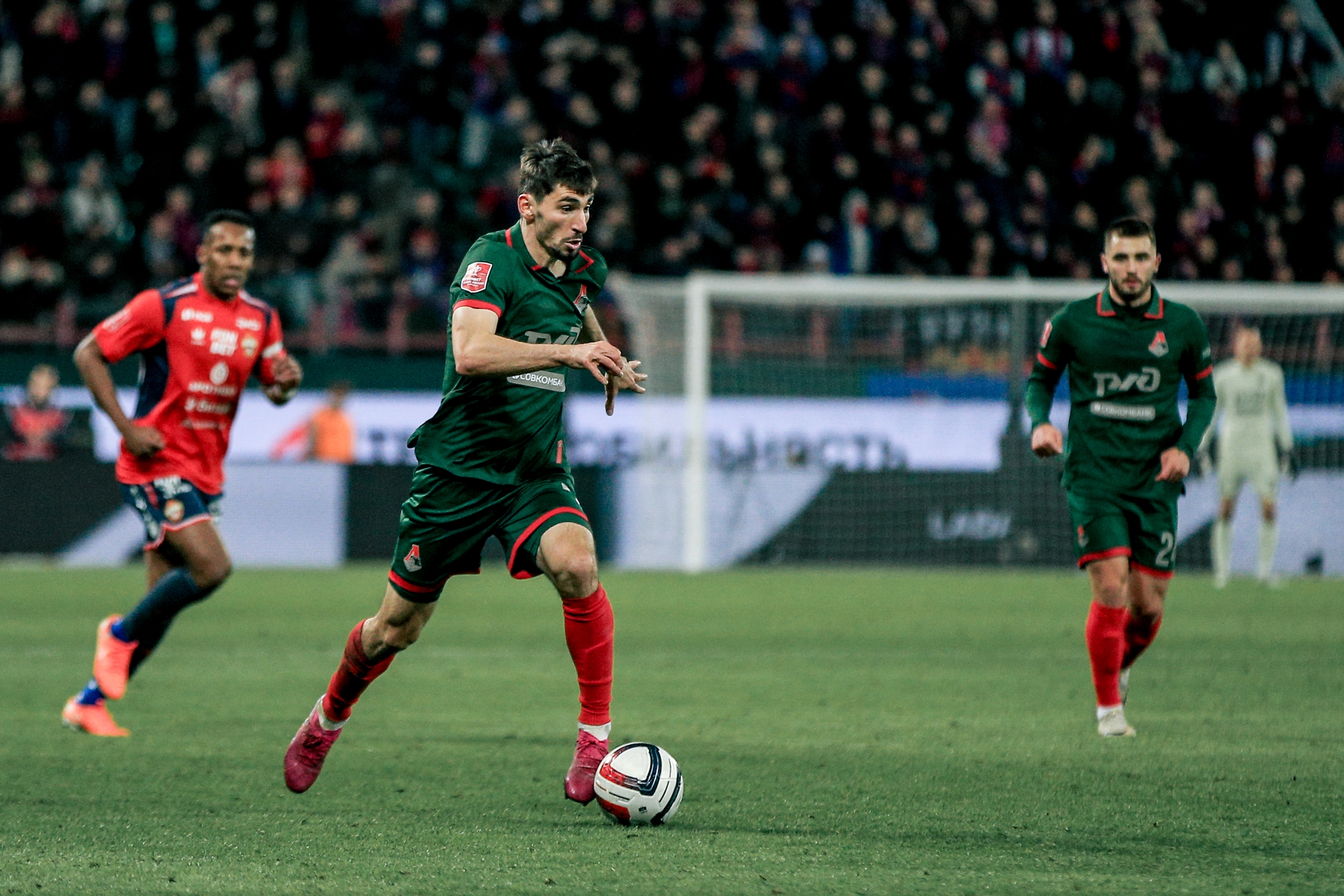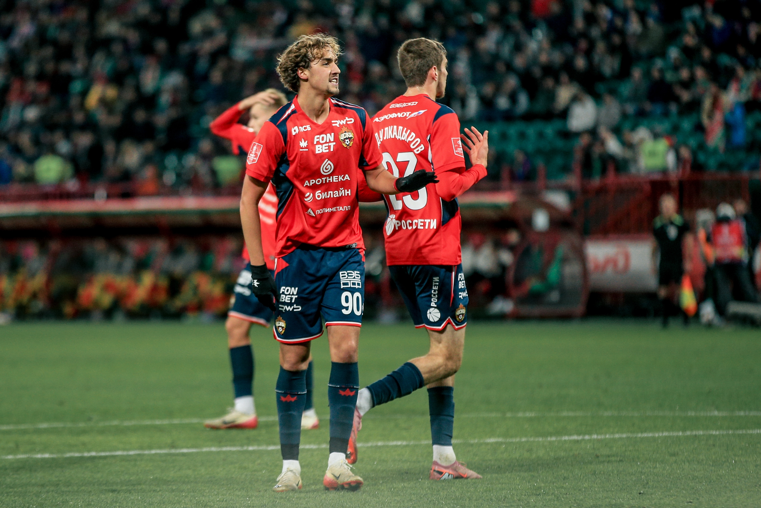 Салтыков на скамейке, Лёвин получает футболку от Облякова. Фото с матча «Локомотив» — ЦСКА