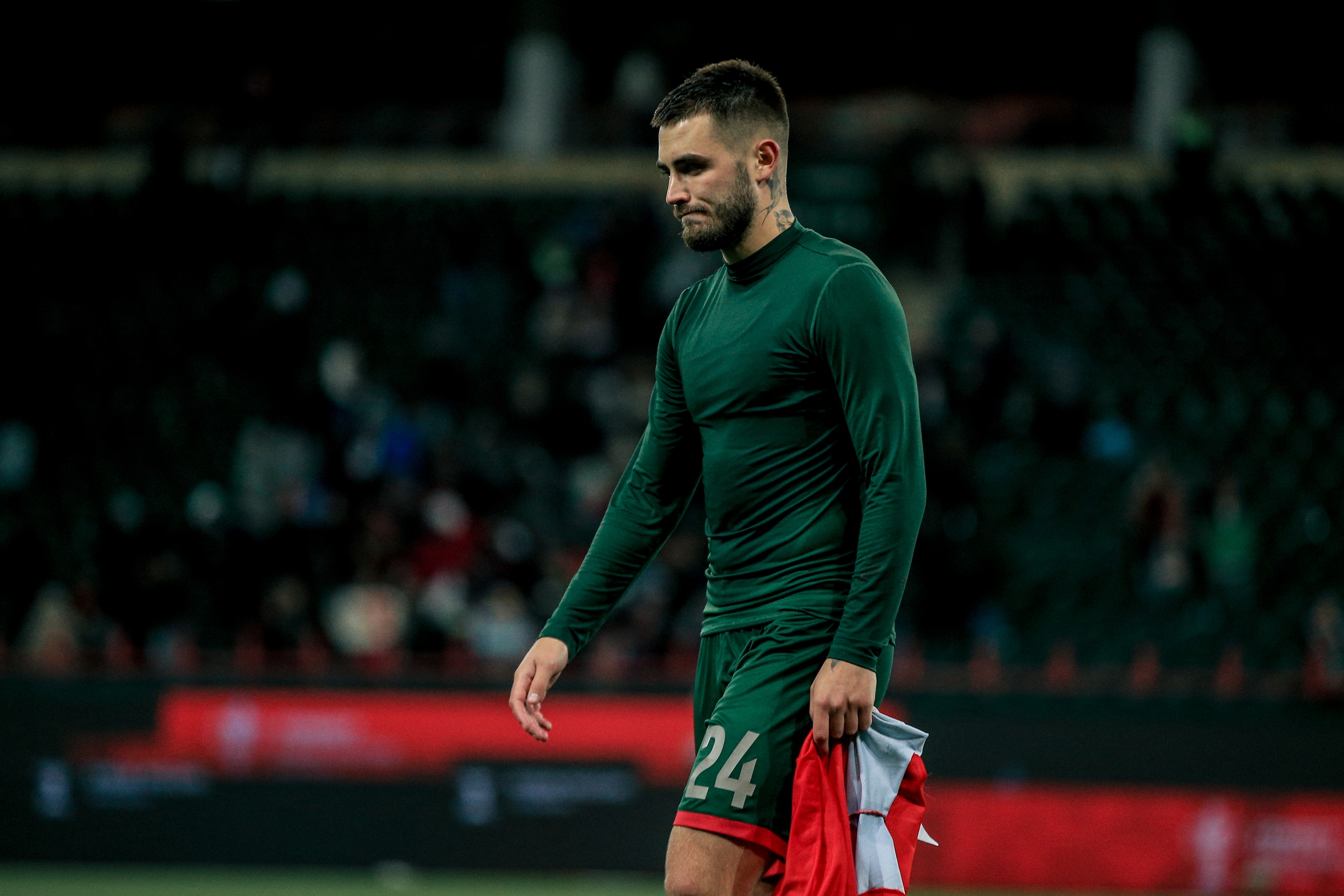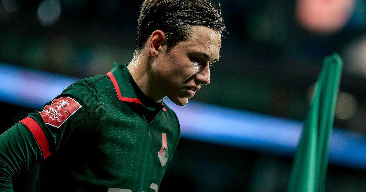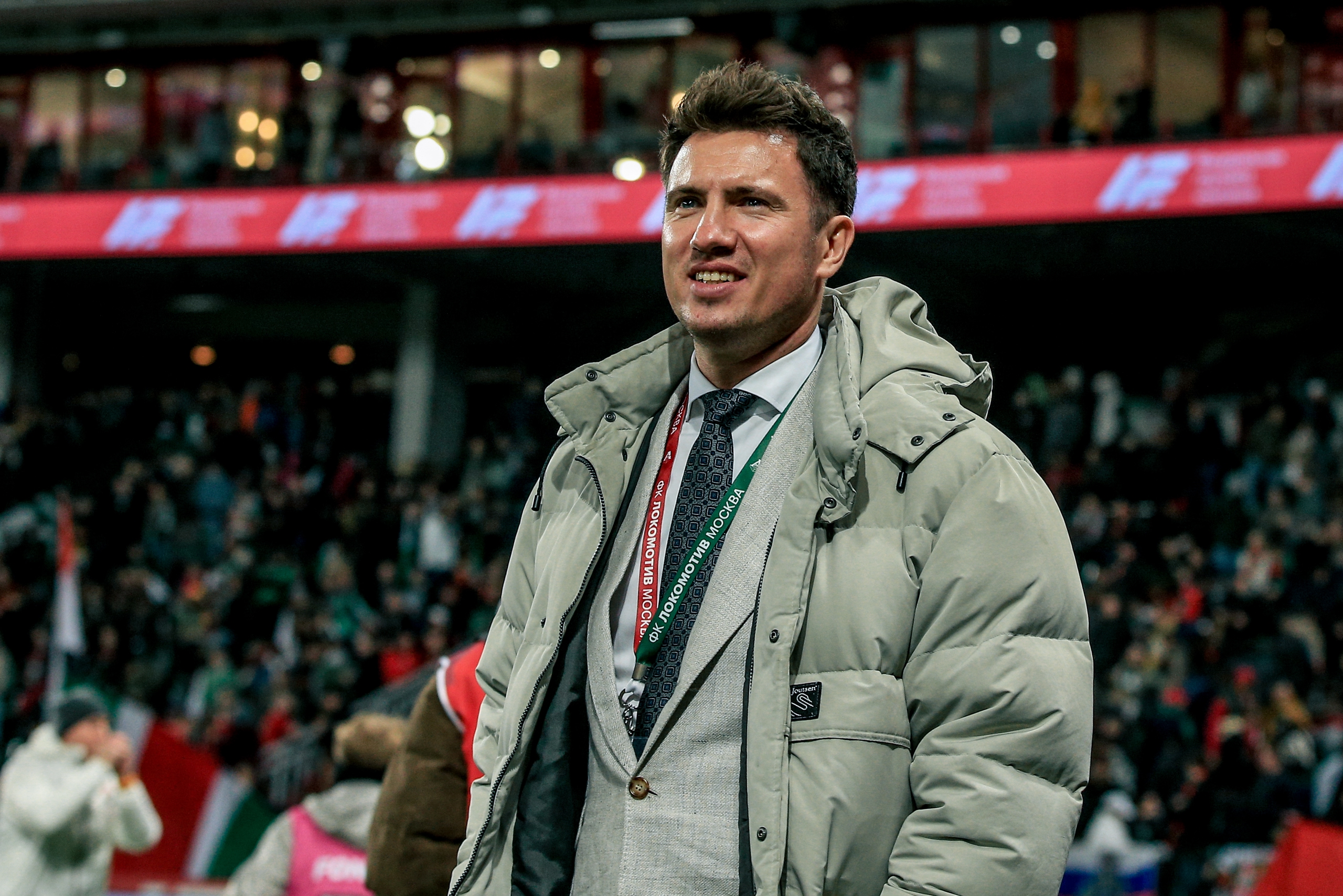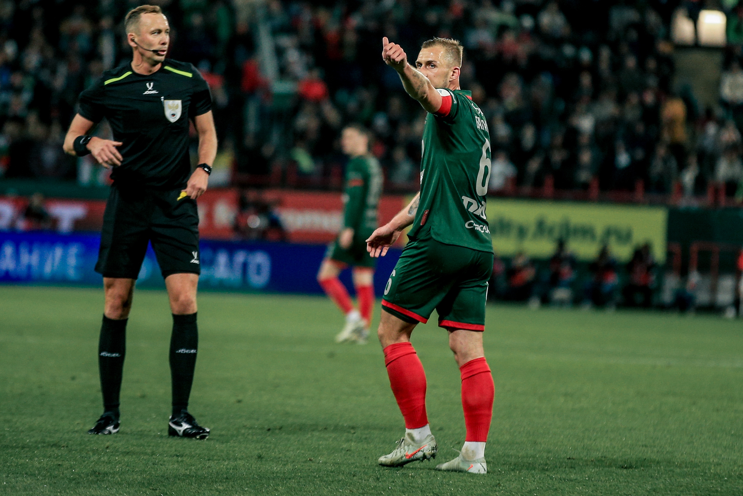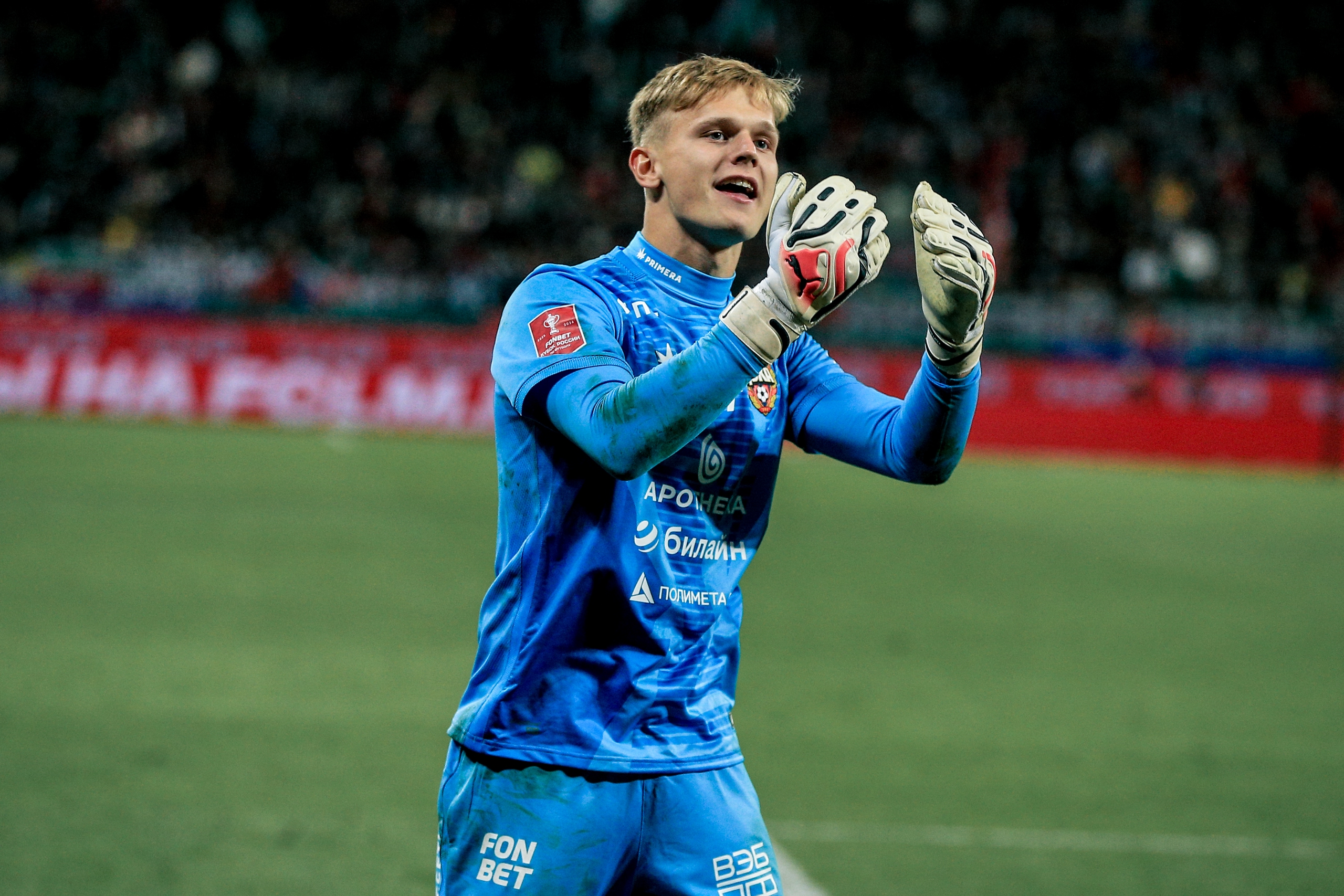 Салтыков на скамейке, Лёвин получает футболку от Облякова. Фото с матча «Локомотив» — ЦСКА