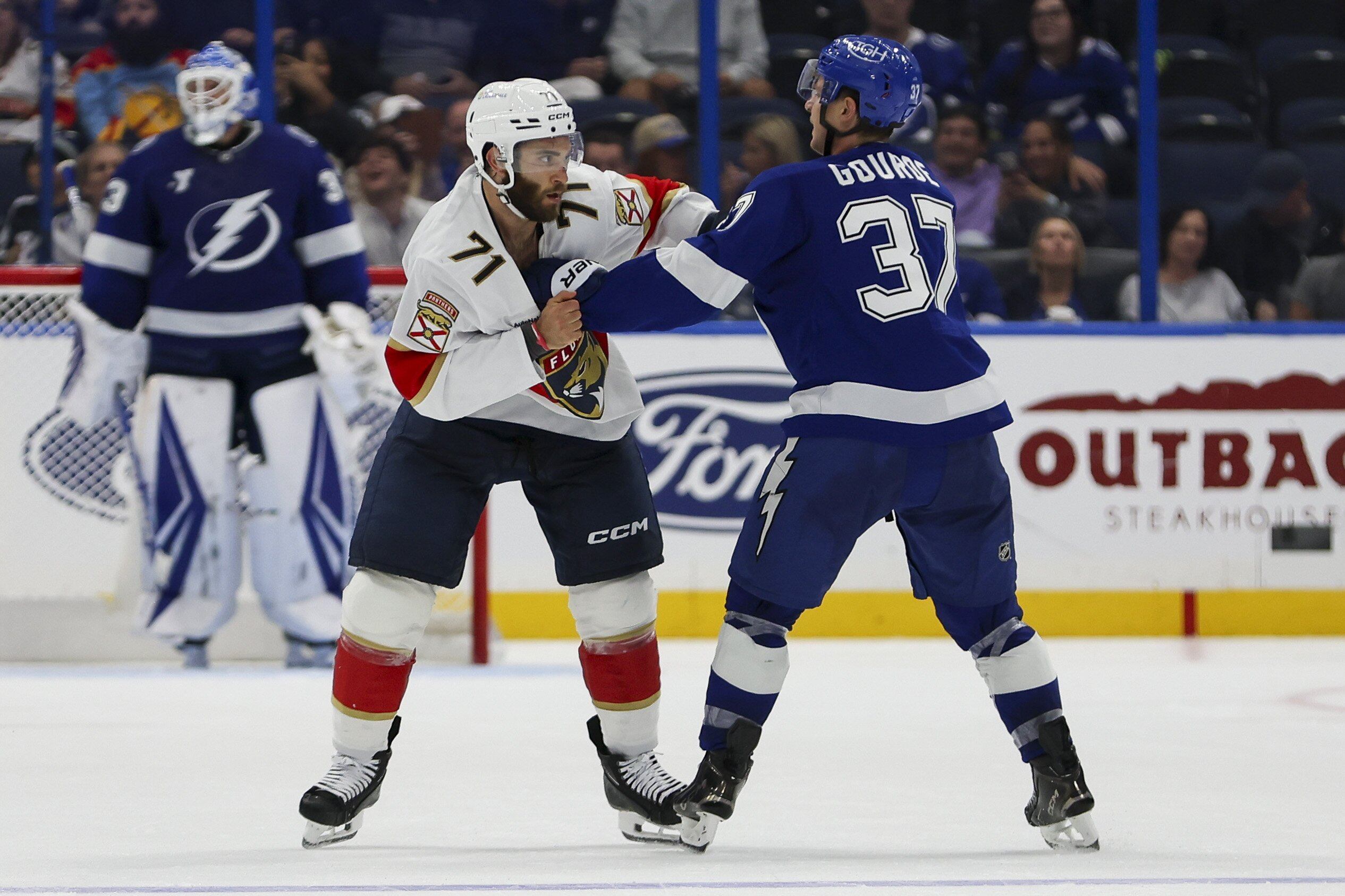 Ещё в начале тренировочного лагеря Брэндон Хэйгл заявлял, что не ожидает переноса плохой крови между «Тампа-Бэй» и «Флоридой» с прошлого плей-офф. Но после того как «Флорида» вновь устроила охоту на Хэйгла, выбив звёздного левого крайнего из игры в четверг в предсезонном матче на «Бенчмарк Интернэшнл Арена», «Лайтнинг» были полны решимости послать ответное послание.