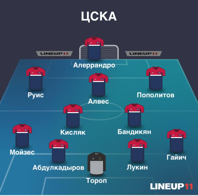Ожидаемо перед дерби со «Спартаком» Фабио Челестини совершил ротацию состава. Самое неожиданное - выход Пополитова с первых минут. Что касается травмированных, у ЦСКА он только один – Ди Лусиано, который должен вернуться в строй в паузу на матчи сборных.