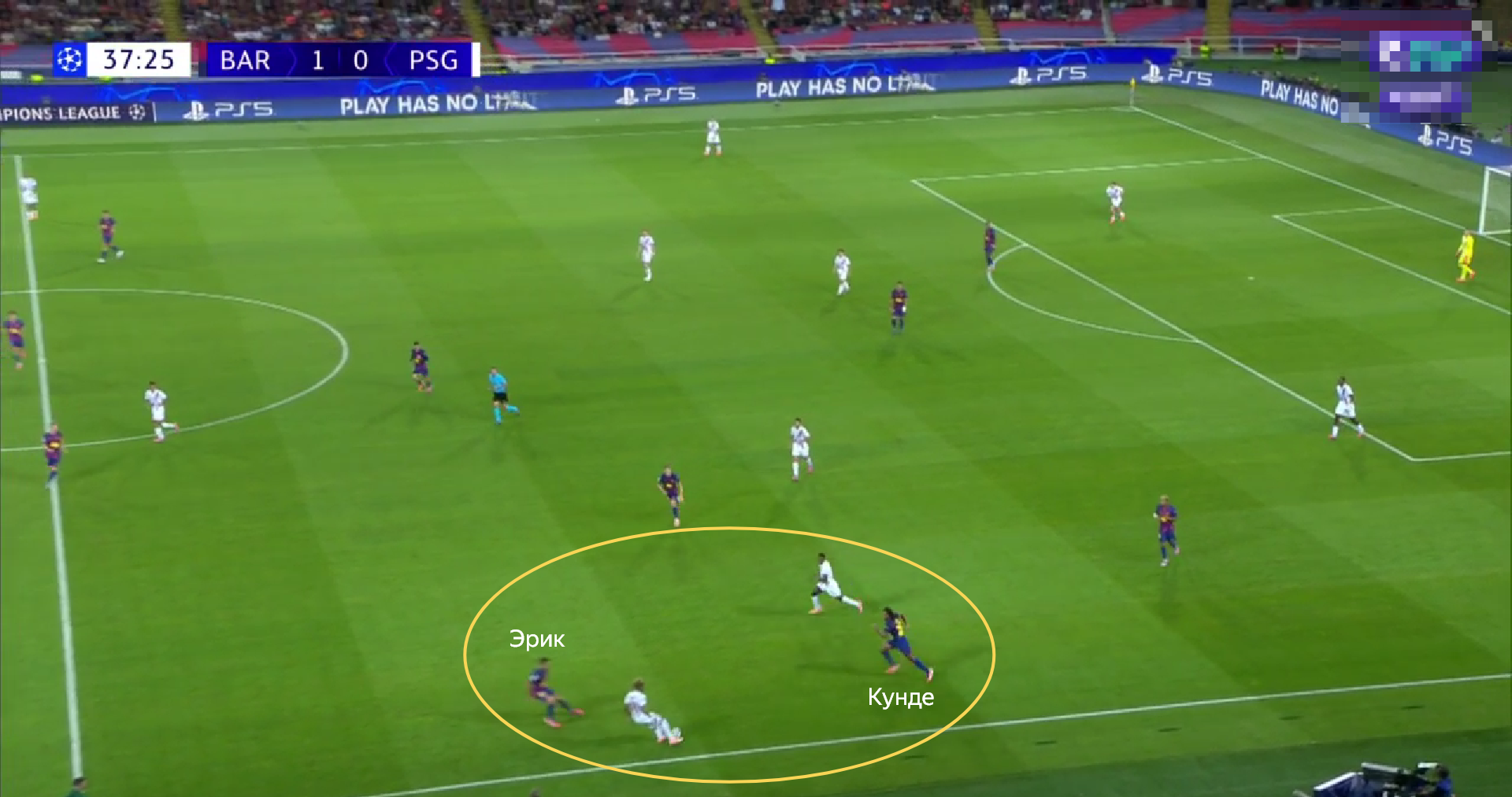 В эпизоде с первым голом гости вышли через зону Ямаля. Кунде поднялся в давление, Гарсия пошел страховать. В результате сзади оcталось больше свободного пространства. Игроки «ПСЖ» этим воспользовались.